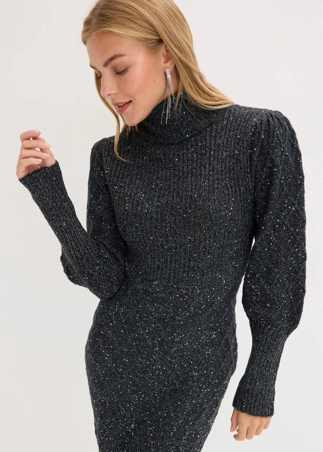 Stylisches Strickkleid mit geshoppten Ärmeln