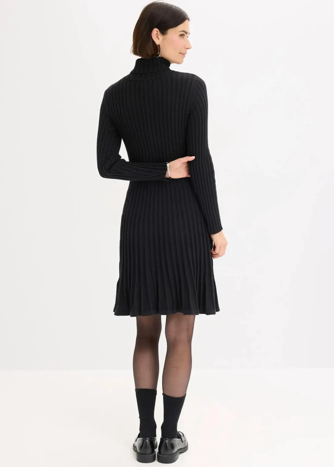 Strickkleid in Rippe und Plissee-Optik im Rockteil