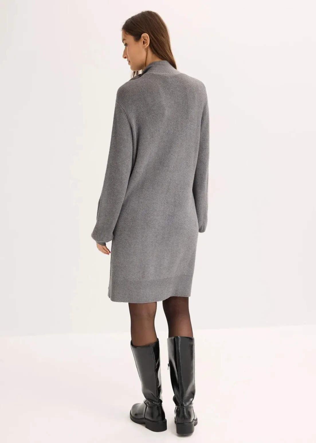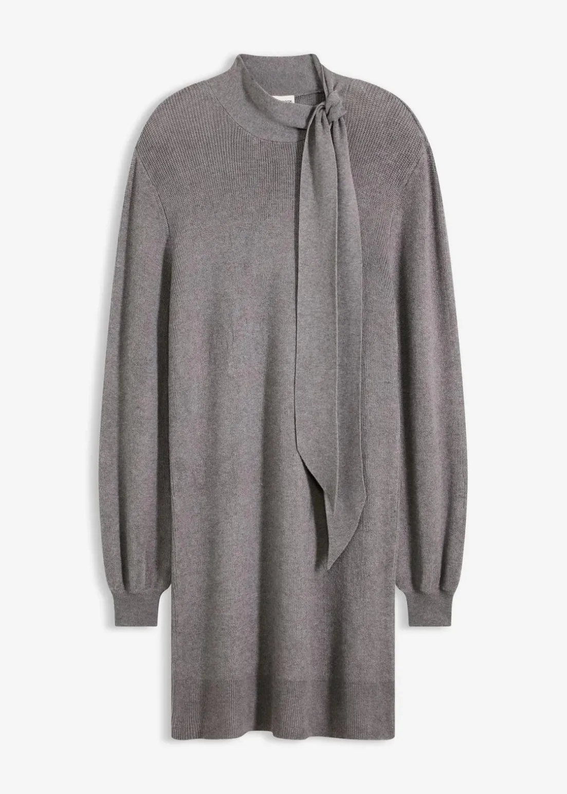 kurzes Strickkleid mit dekorativer Schleife seitlich am Kragen