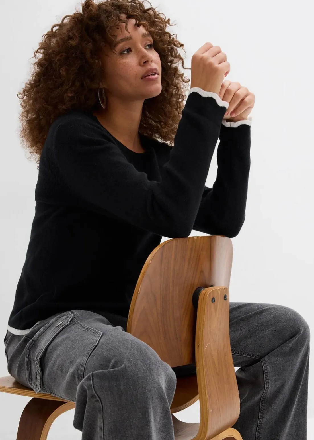 Trendiges Strickshirt mit Kontrastsaum