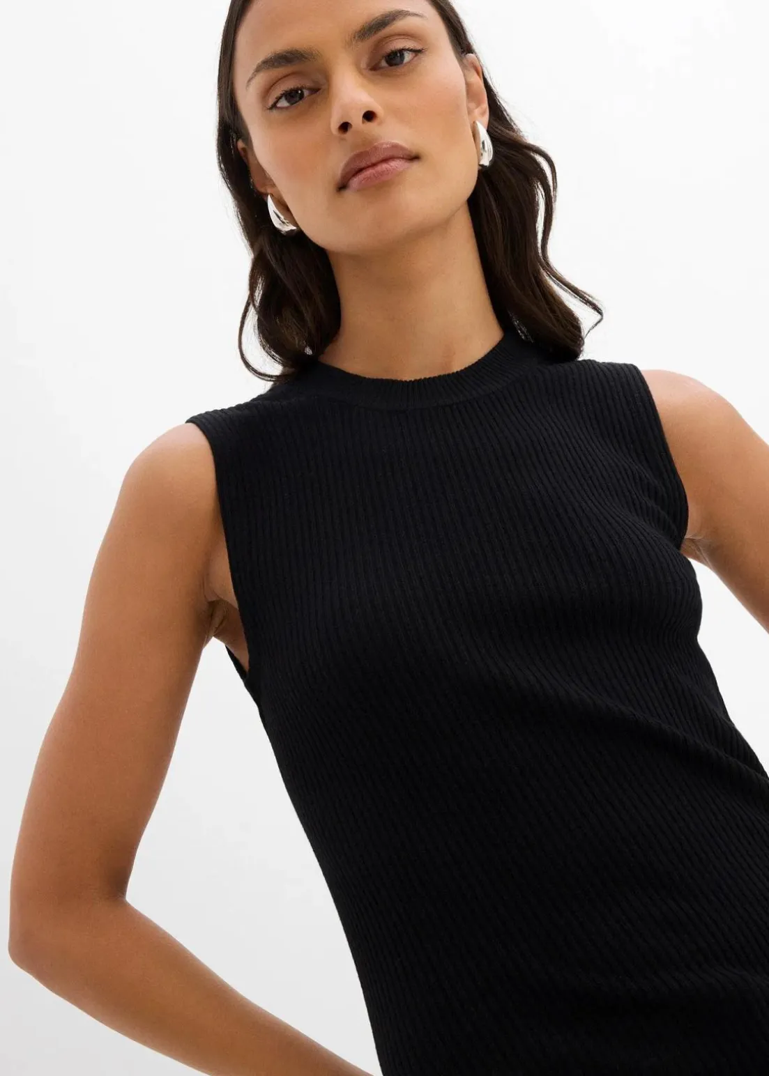 Langes Stricktop mit Rundhalsausschnitt und Seitenschlitz im Saum