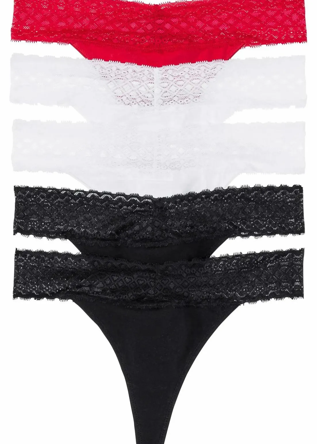 Ob bei warmen Temperaturen oder unter engen Hosen und Röcken, der klassische String gehört in jede Wäscheschublade. Dieses praktische Vorteilspack bietet durch den Zwickel aus weicher Baumwolle ein komfortables Tragegefühl und praktische Alltagstauglichkeit. Das schlichte Design wird mit verspielt wirkenden Spitzenbündchen aufgelockert, durch die der String eine besonders feminine Note erhält. Durch die verschiedenen Designs ist dieses Set eine gute Wahl zu vielen Outfits.
