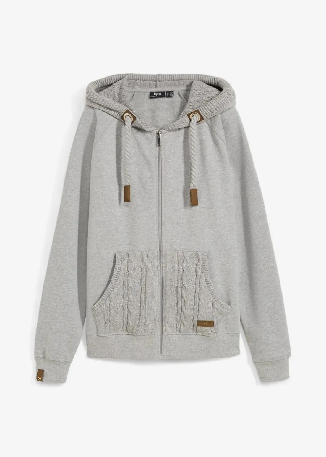 Sweatjacke mit schönen Strick- und Lederimitat-Details