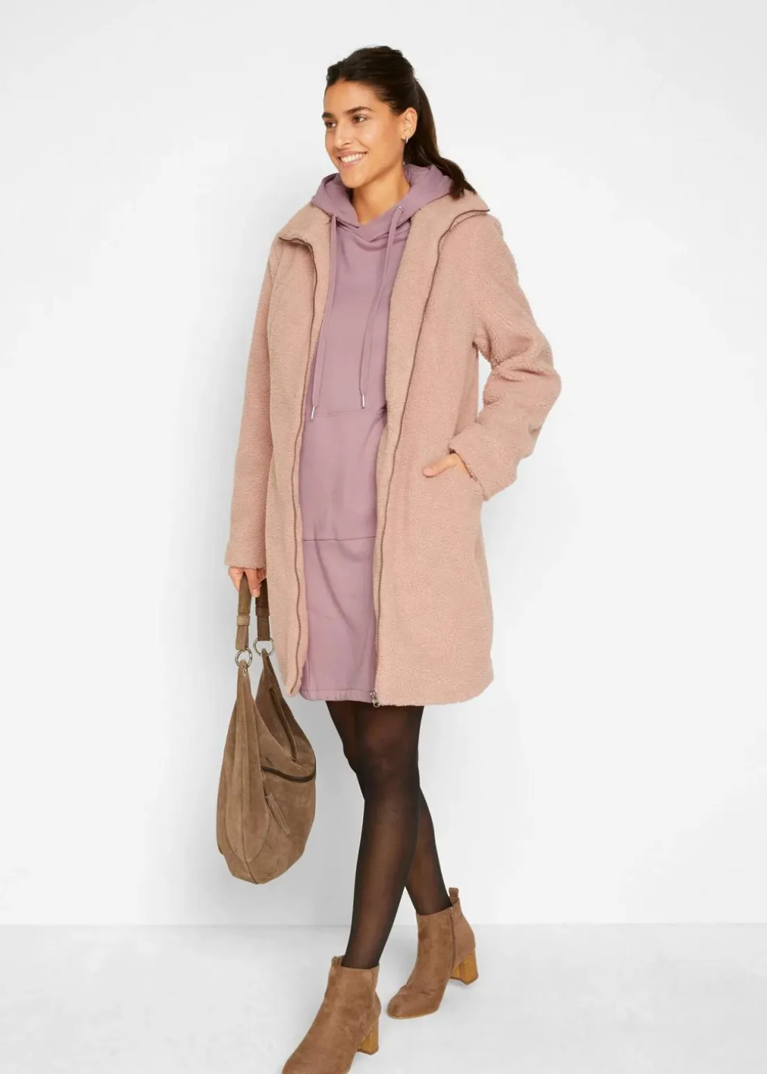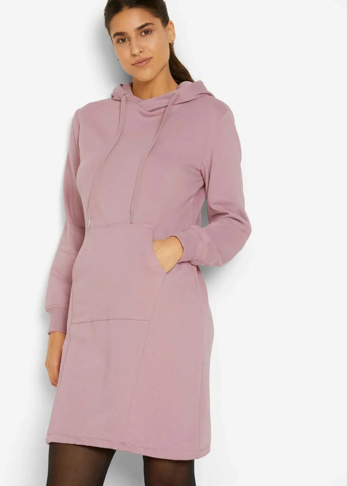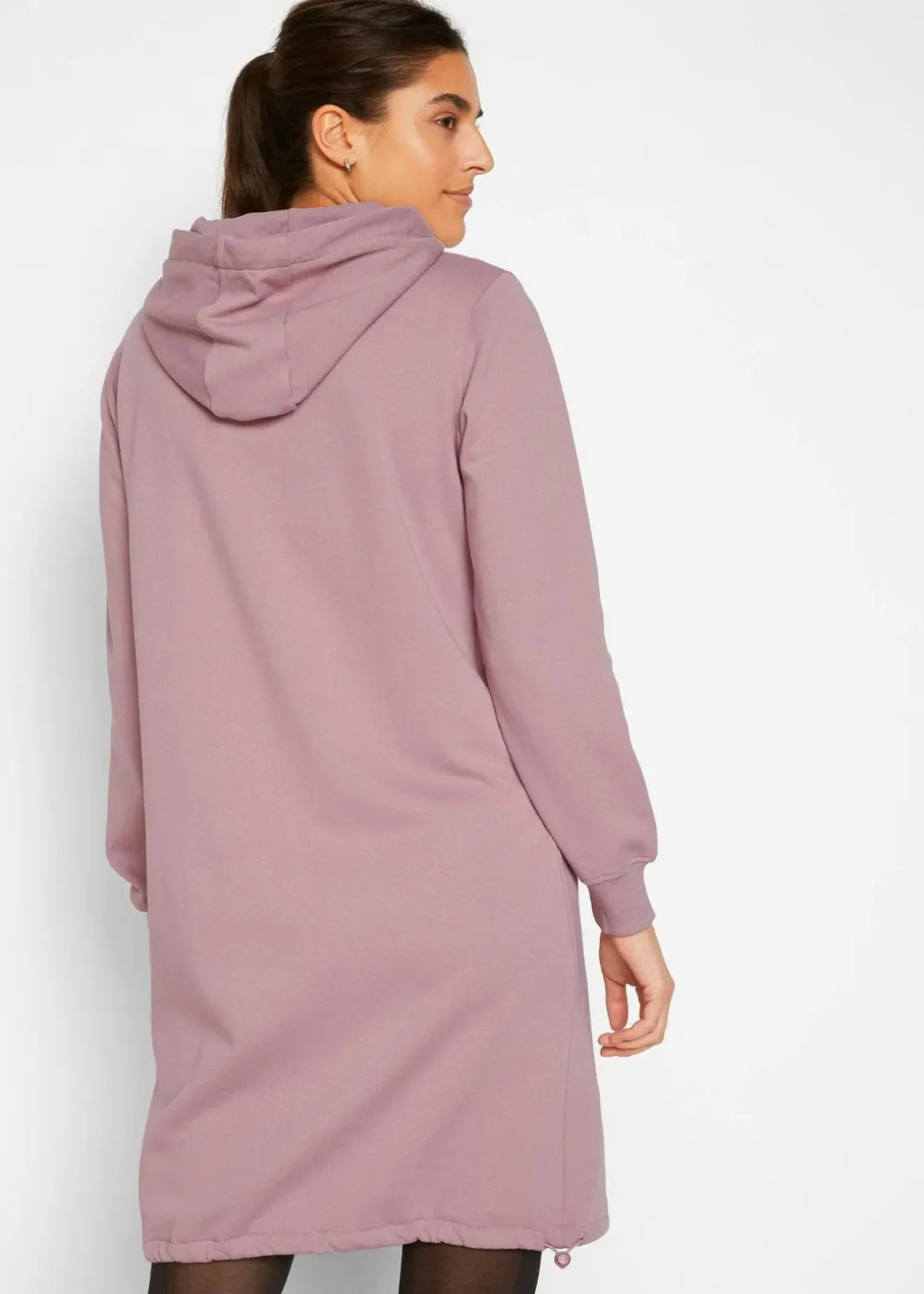 Langärmliges Sweatkleid mit Kapuze und Gummizug