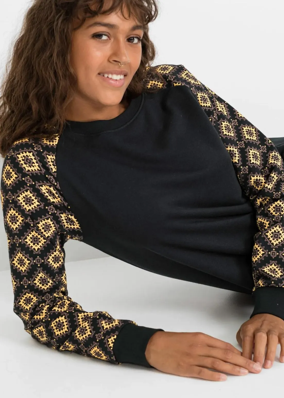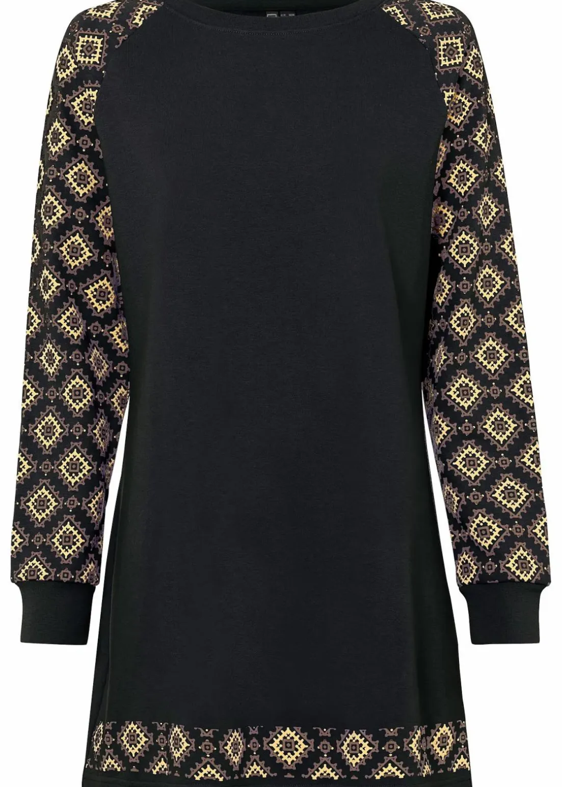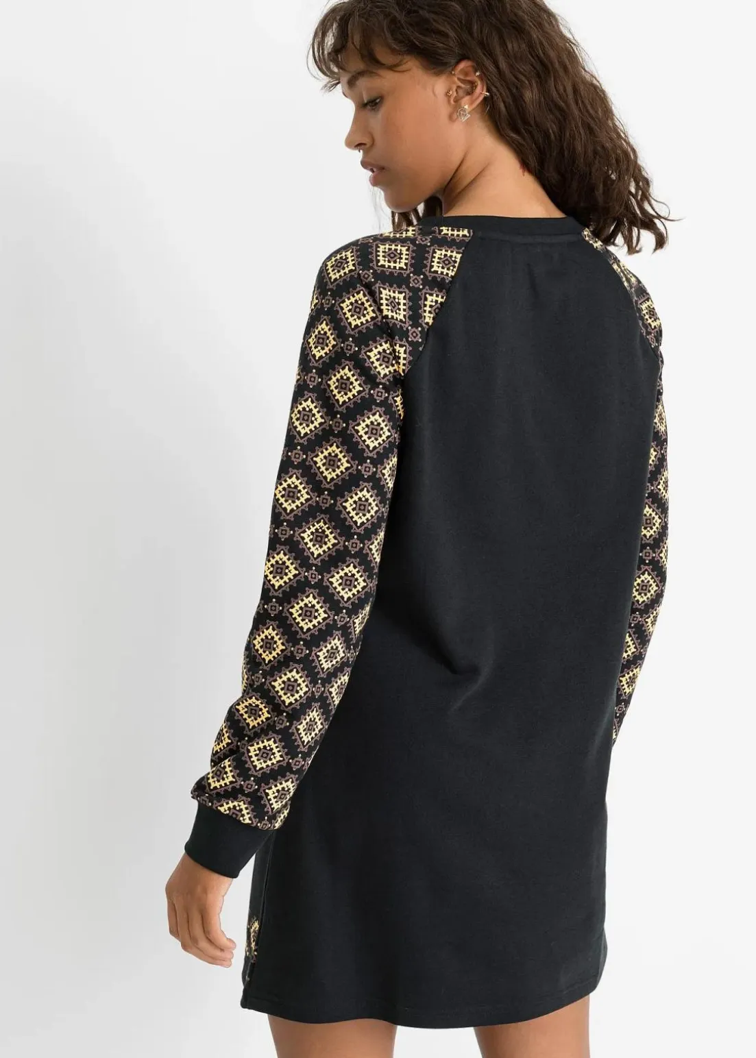 Bequemes Sweatkleid mit Druck auf den Ärmeln