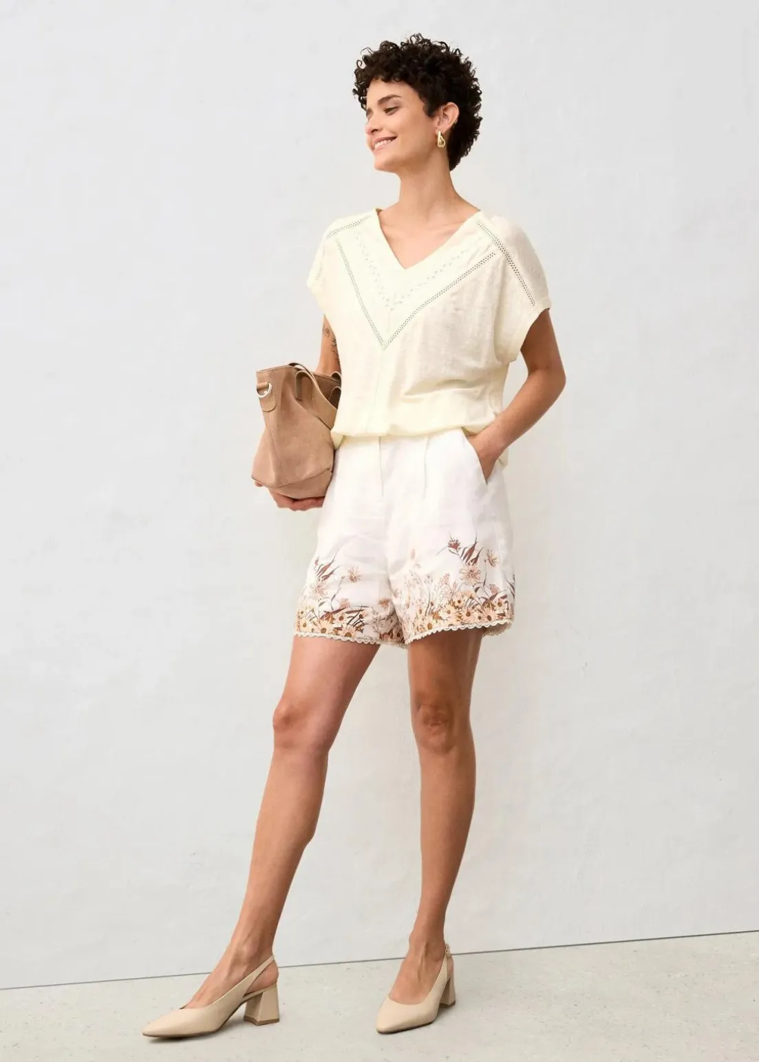 sommerliches Premium Shirt mit Stickerei und 100% Leinen