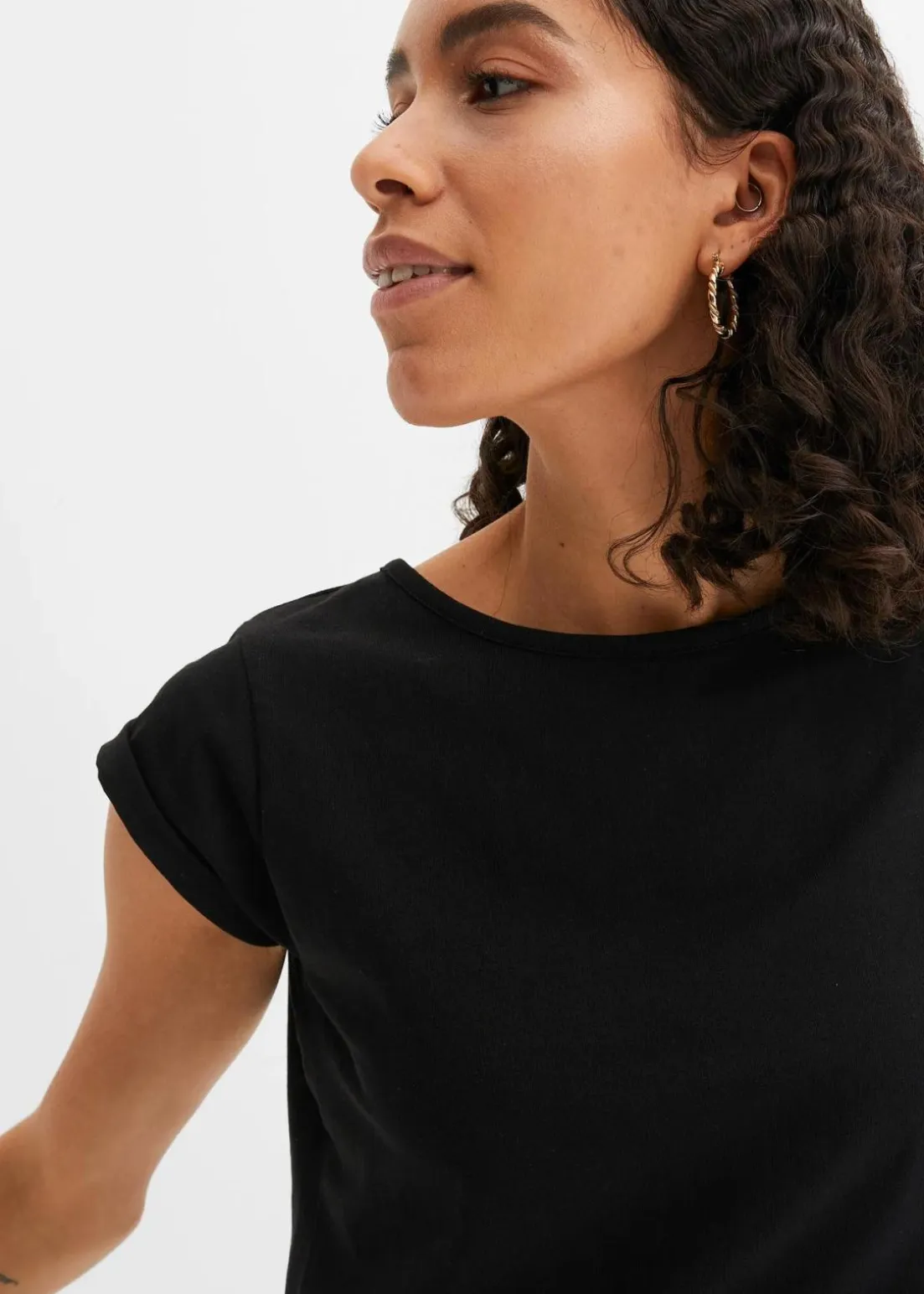 Das modische Kurzarm-Shirt der Marke John Baner ist ein auffälliges Basic für Trendsetterinnen. Die coole Kastenform lenkt die Blicke auf sich und umspielt gleichzeitig weibliche Kurven.Das sehr bequeme Shirt mit Rundhalsausschnitt wird durch einen attraktiven Umschlag am Armausschnitt aufgepeppt. Besonders hübsch ist das trendige T-Shirt zu unifarbenen Jeans und Ballerinas.