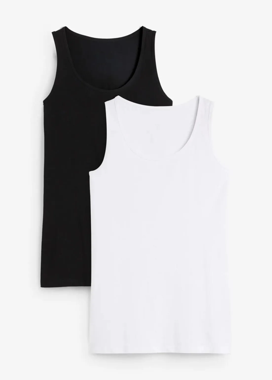 Ungezwungenheit und Kombinationsfreude werden groß geschrieben beim Stretch Tank-Top im 2er-Pack. Die Stretchware mit breiten Trägern von bpc überzeugt als Set mit verschiedenen Farben und einem Top in Weiß.Figurbetont geschnitten passen die praktischen und alltagstauglichen Basics zu Stoffhosen ebenso wie zu Jeans in vielen Waschungen. Der Rundhalsausschnitt ermöglicht den Einsatz unzähliger Lieblingsaccessoires von der Kette bis hin zum Dreieckstuch.
