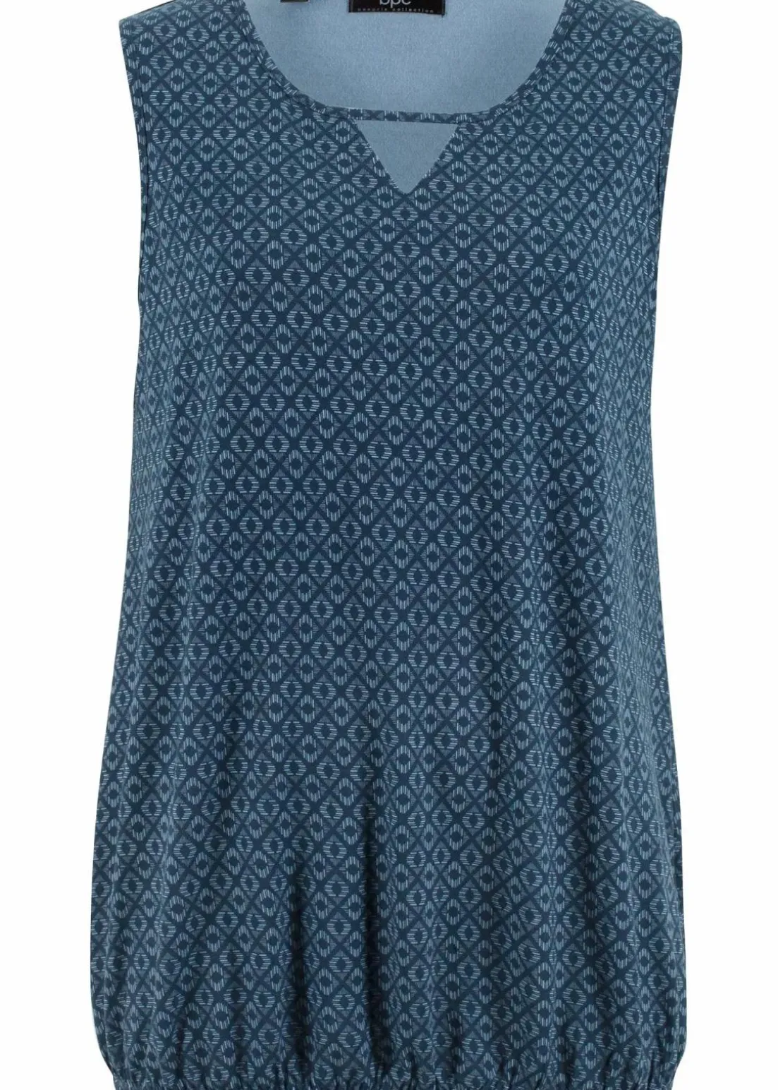 Ein vielseitiger Begleiter für abwechslungsreiche Kombinationen ist dieses luftige Top mit Gummizug am Saum und mit breiten Trägern. Das dezente Allover-Printmuster sorgt für eine schicke Optik. Sehr dekorativ wirkt der modische Ausschnitt mit V-förmigem Cut-Out und kleinem Bändchen. Die fließende Viskose-Elasthan-Qualität und der lockere, kaschierende Schnitt machen das Top von bpc zu einem hervorragenden Figurschmeichler.