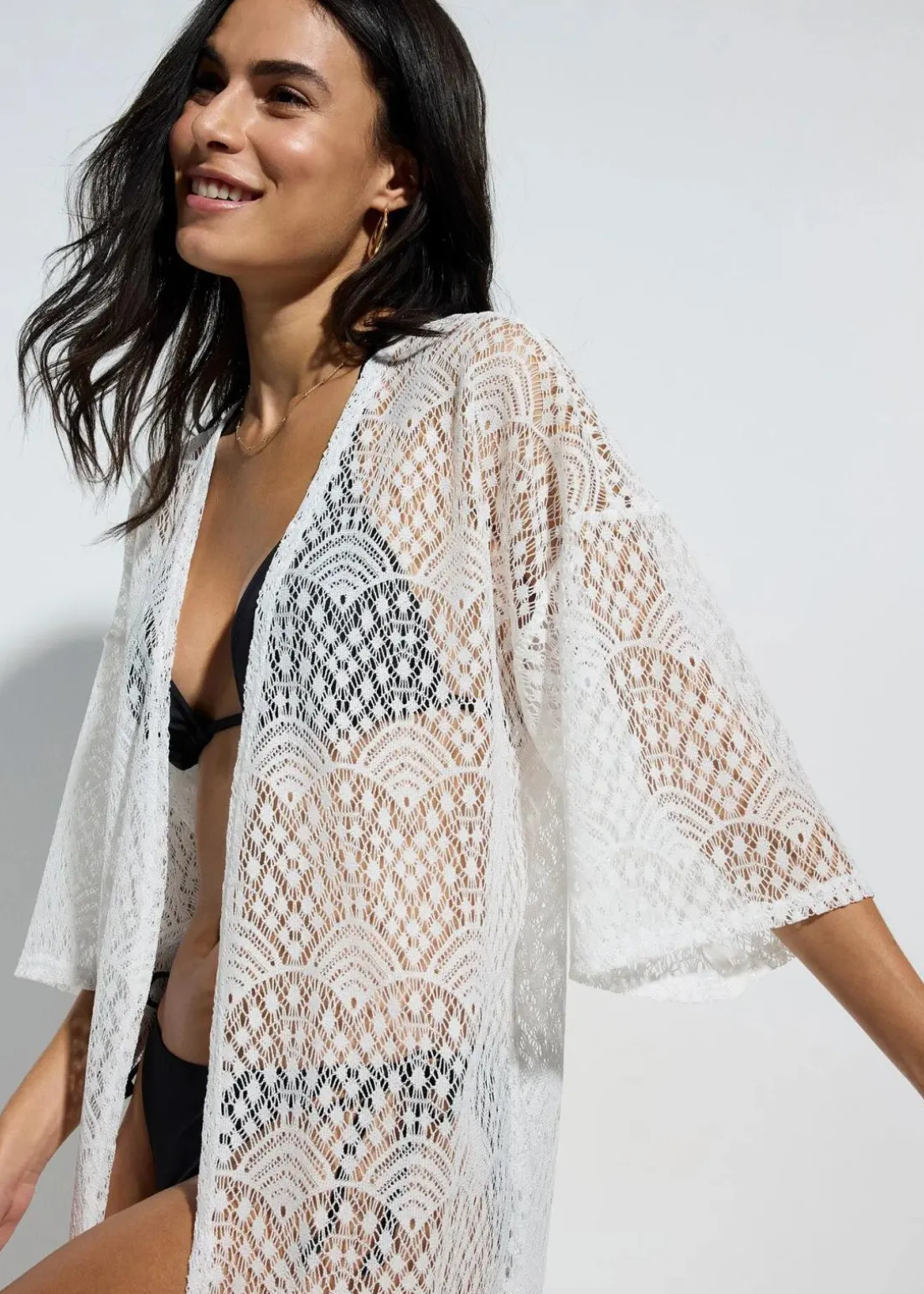 Luftiger, langer Kimono aus transparentem Material