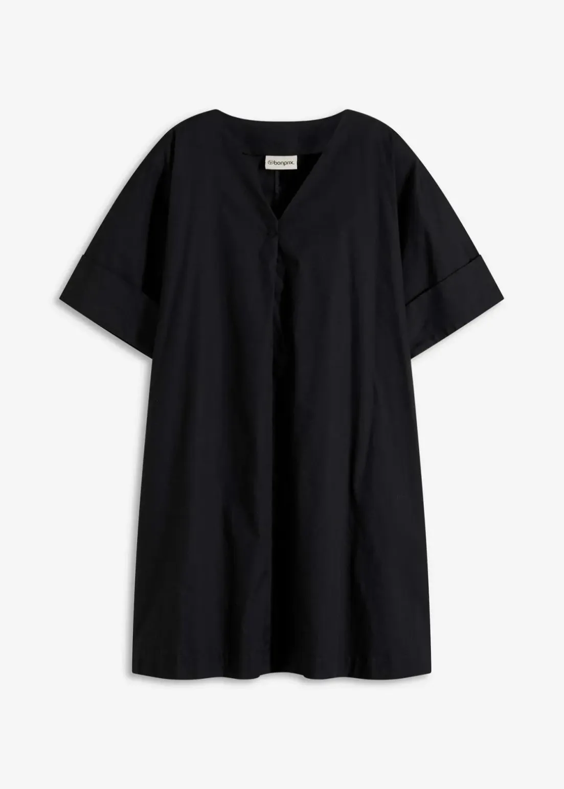 Ausgestelltes Tunika-Kleid mit V-Ausschnitt und kurzen Ärmeln