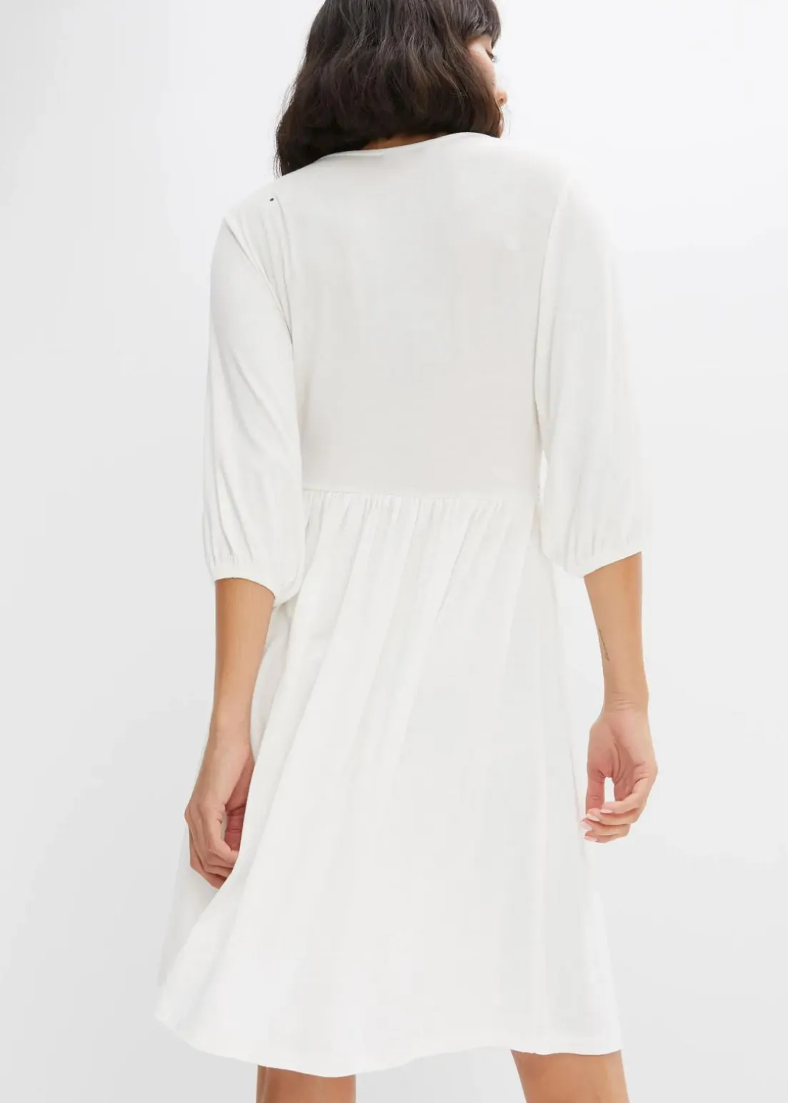 modisches Kleid mit dekorativer Spitze am Ausschnitt und vorne an der Taille.