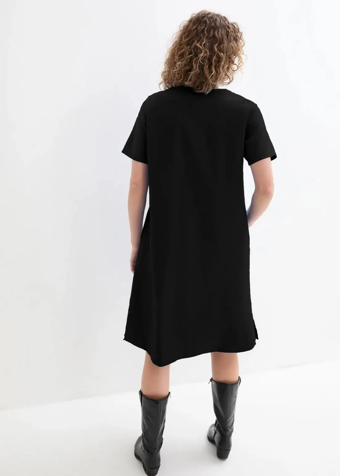Kniebedeckendes Tunika-Kleid umspielt mit ihrer Passform die Silhouette
