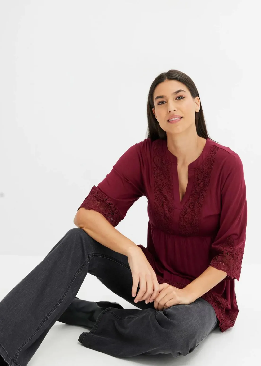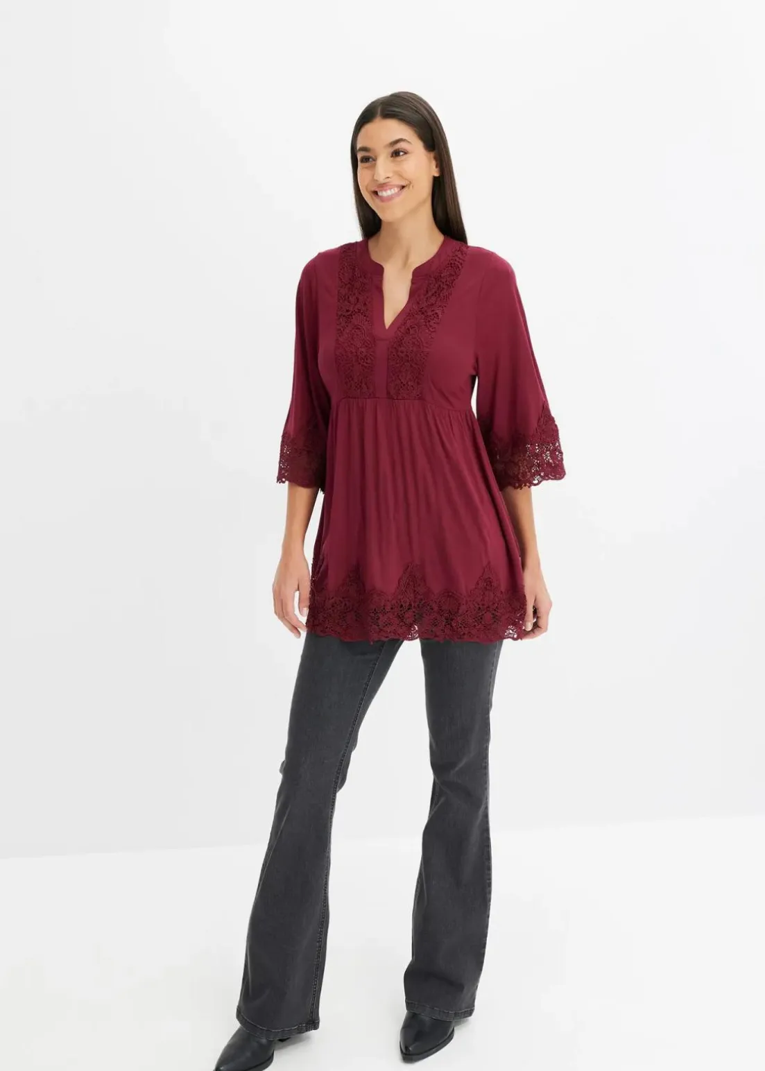 Aufwendig gearbeitete Tunika mit Spitzendetails