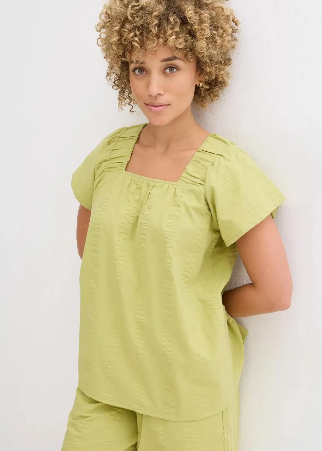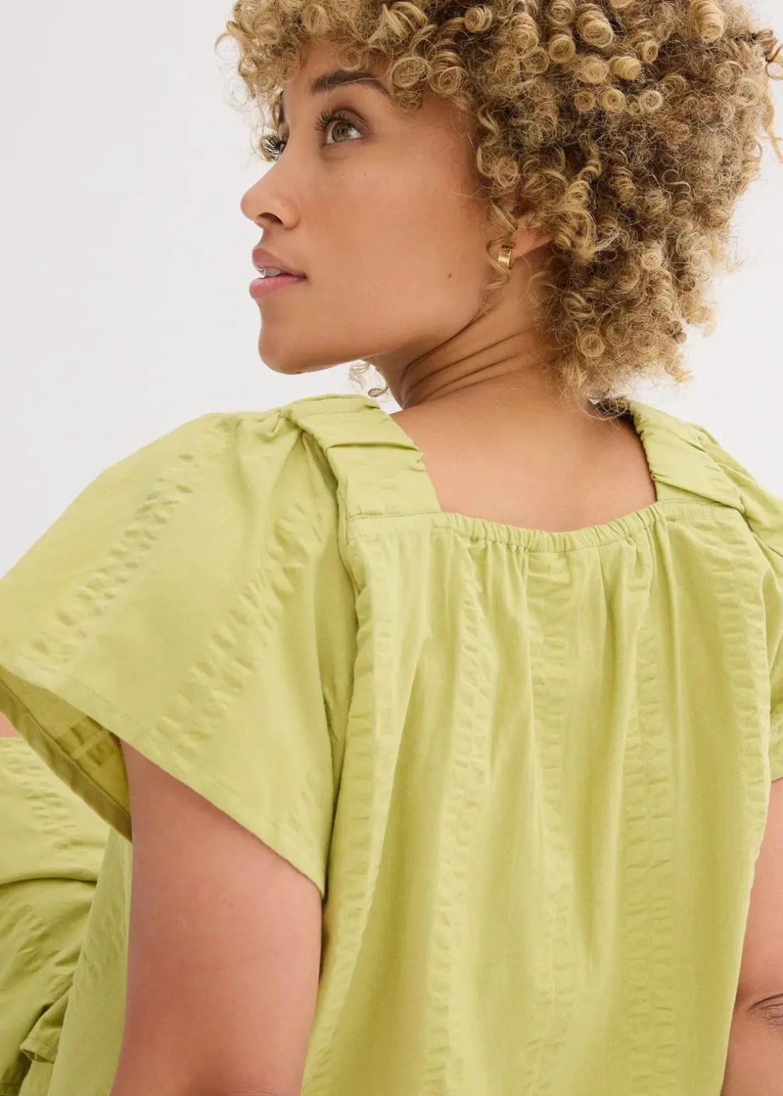 Baumwollbluse aus leichtem Strukturmaterial mit Flügelärmeln und elastischen Trägern