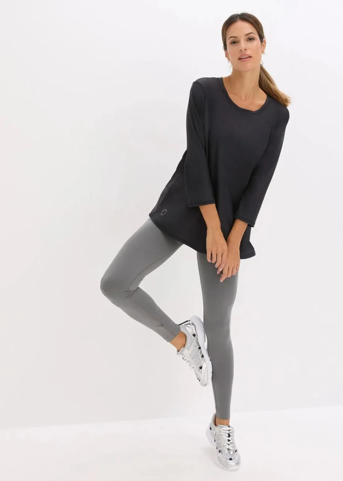 Lockeres ultrasoftes Funktionsshirt mit ¾ Ärmel und Seitenschlitzen, Quickdry