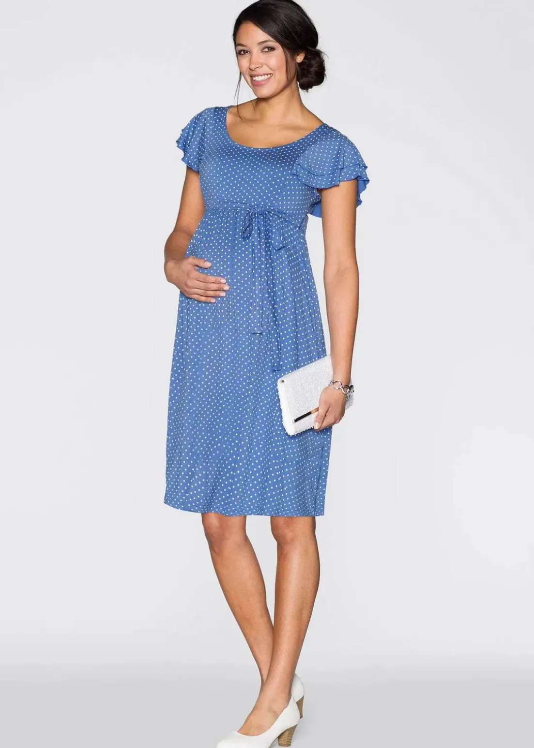 Gepunktetes Kleid mit Bindeband für die Schwangerschaft