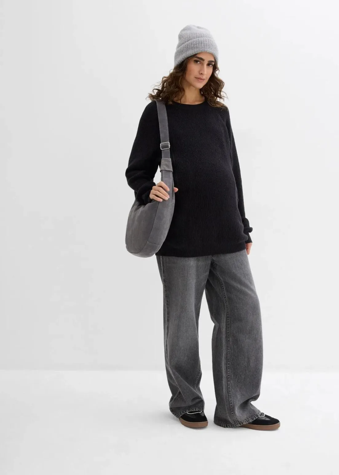 Weicher Pullover aus grobmaschigem Strick für die Schwangerschaft und danach mit Rundhalsausschnitt. An den Seiten sind kaum sichtbare Reißverschlüsse eingearbeitet, die sich bequem zum Stillen öffnen lassen. Die Reißverschlüsse sind zum Schutz des Babys mit Stoff unterlegt und verhindern außerdem den direkten Hautkontakt.