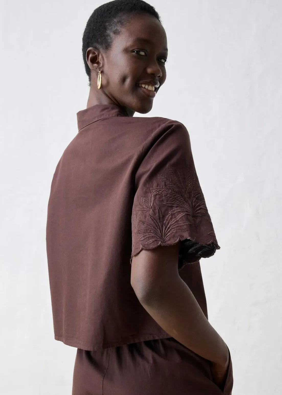 modische Bluse in kurzer Form mit Seidenanteil