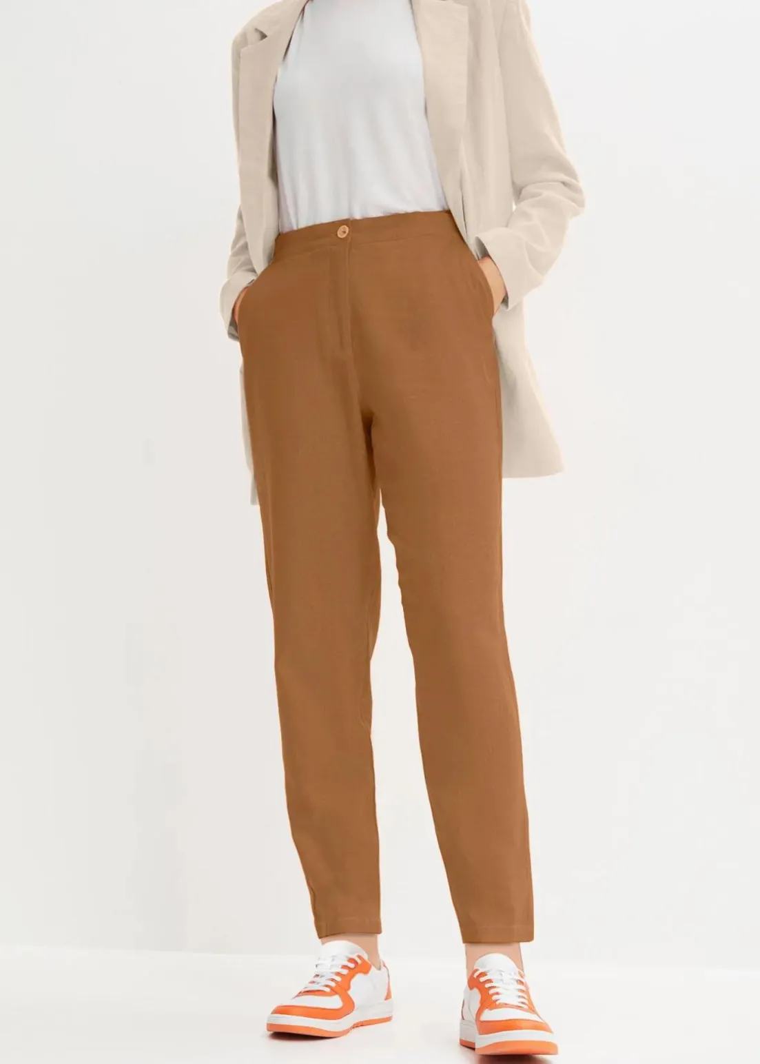 Lässige Leinenhose mit elastischem Bund und verkürztem Bein