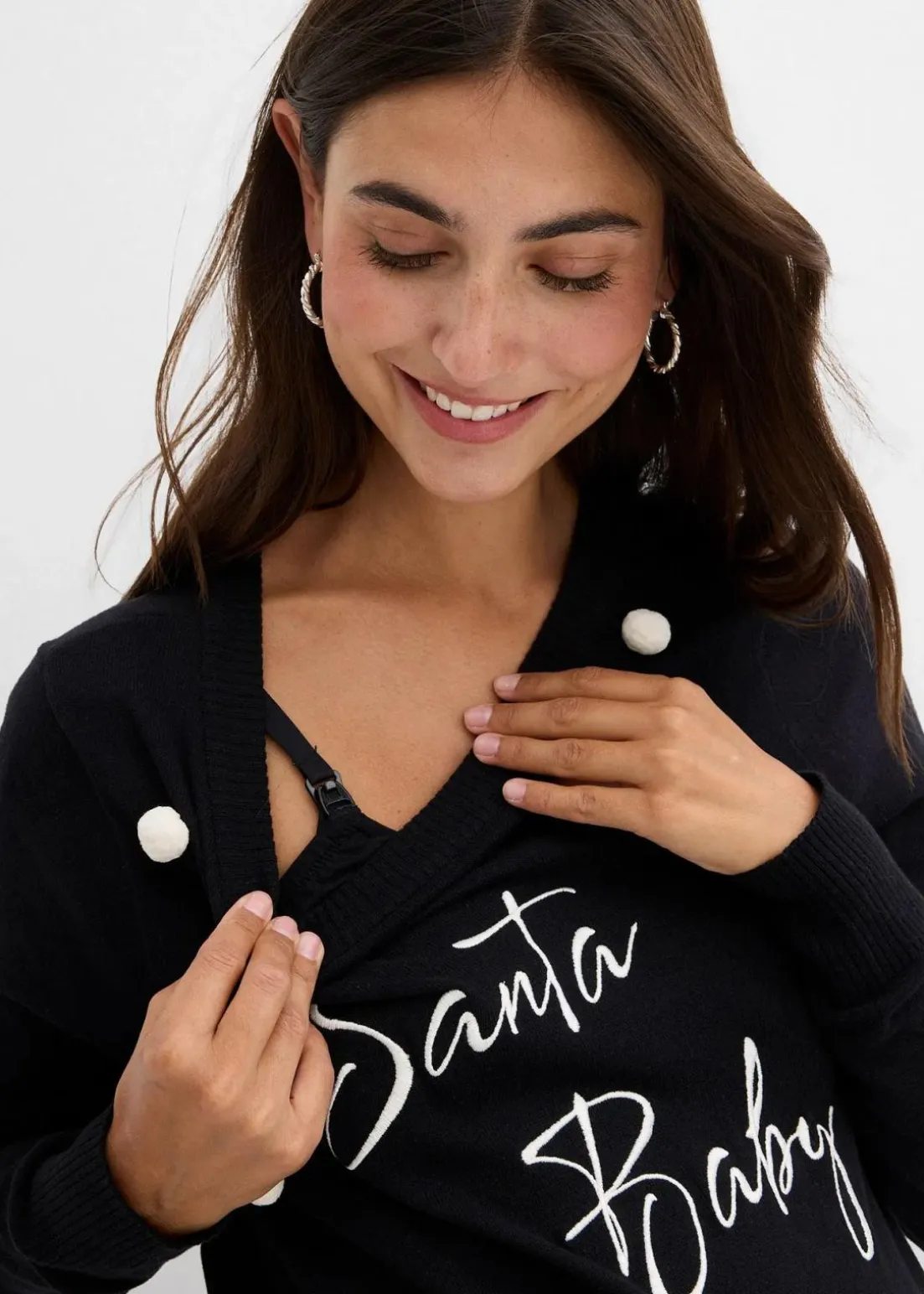 Dieser Umstandspullover bringt festliche Stimmung in deine Garderobe. Mit seinem „Santa Baby“-Stick und den verspielten Pompons sorgt er für einen besonderen Look. Der hüftbedeckende Regular Fit und die langen Ärmel bieten Komfort und Bewegungsfreiheit. Perfekt für die Feiertage – stylisch, gemütlich und ideal für deinen Babybauch.