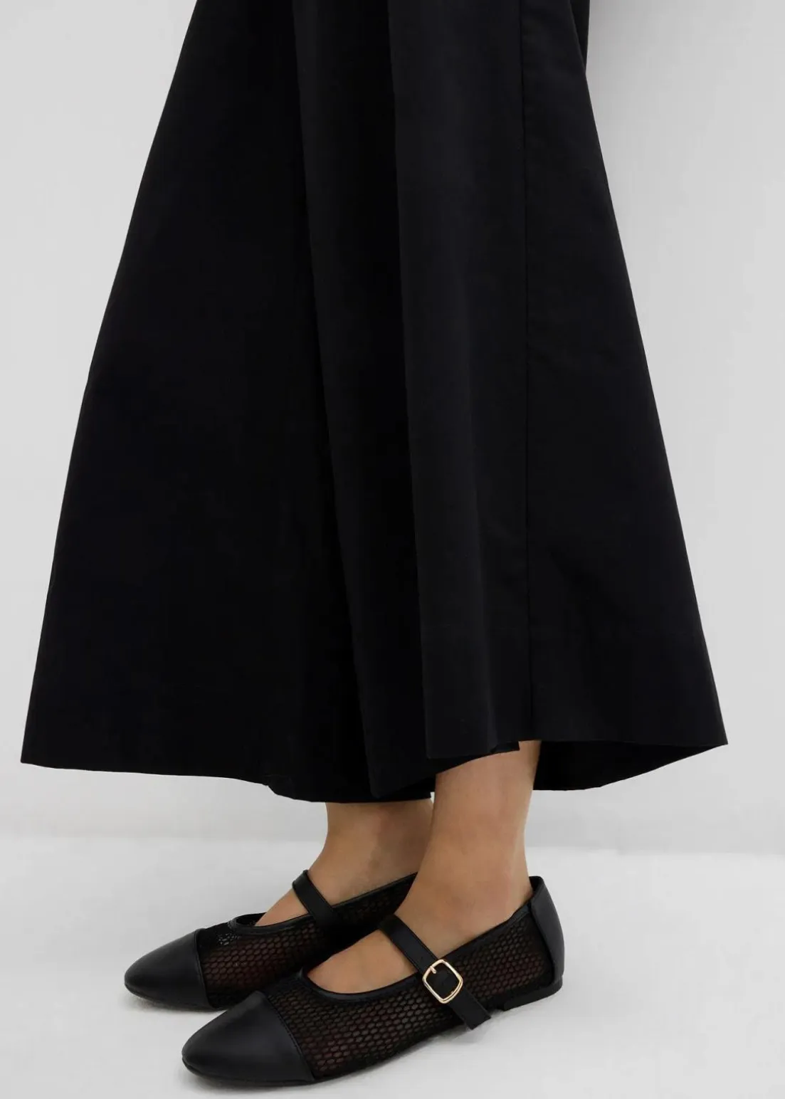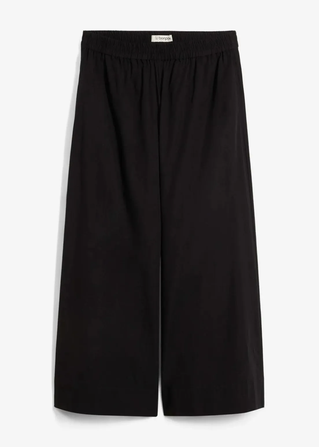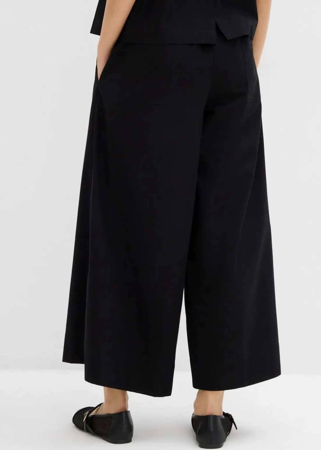 Culottes mit besonders weitem Bein, einem bequemen Gummibund sowie vorderen Seitennahttaschen und aufgesetzten Gesäßtaschen