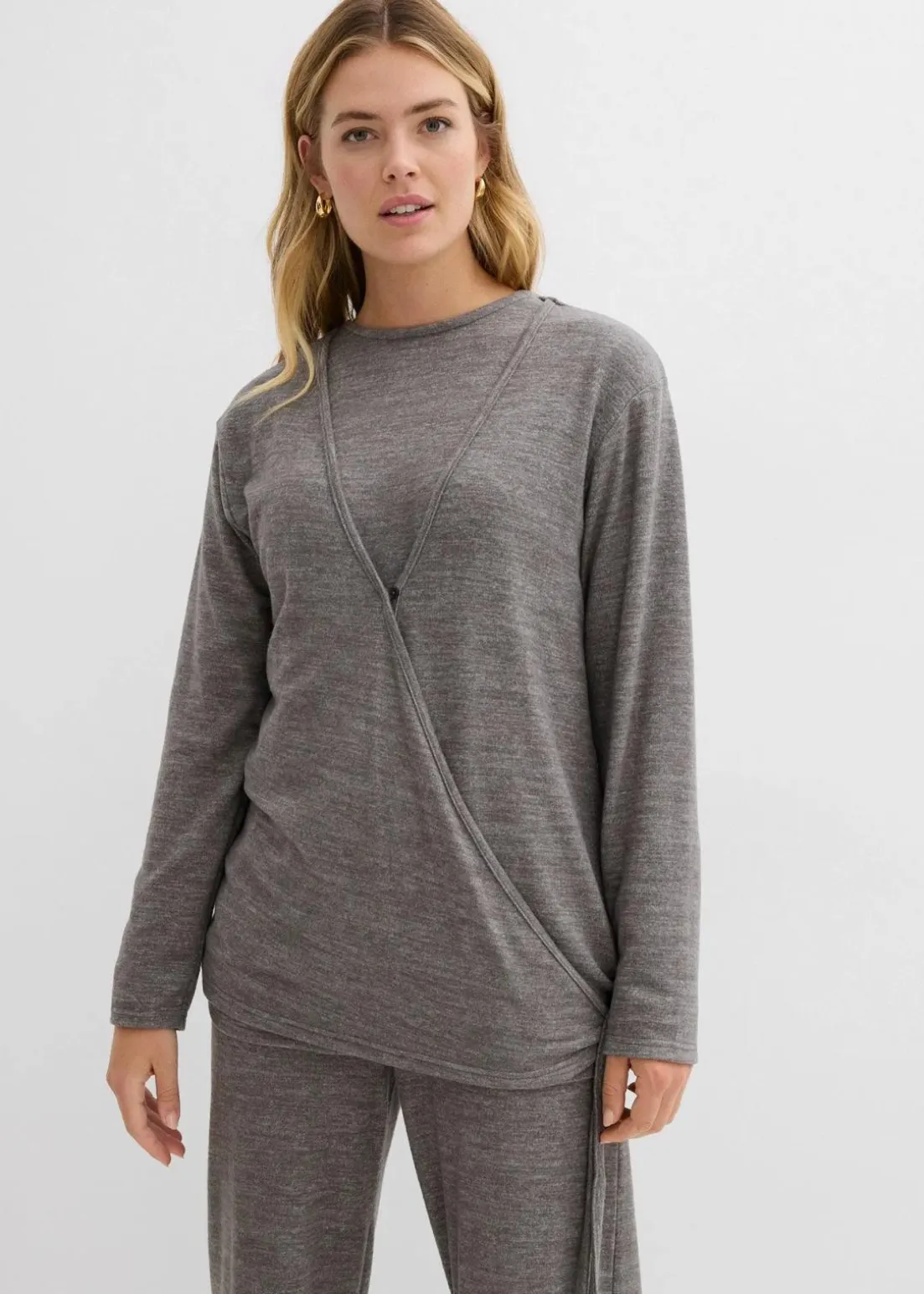 Langärmliger Wickelcardigan mit Schnürung am Saum und zusätzlichem Knopfdetail.