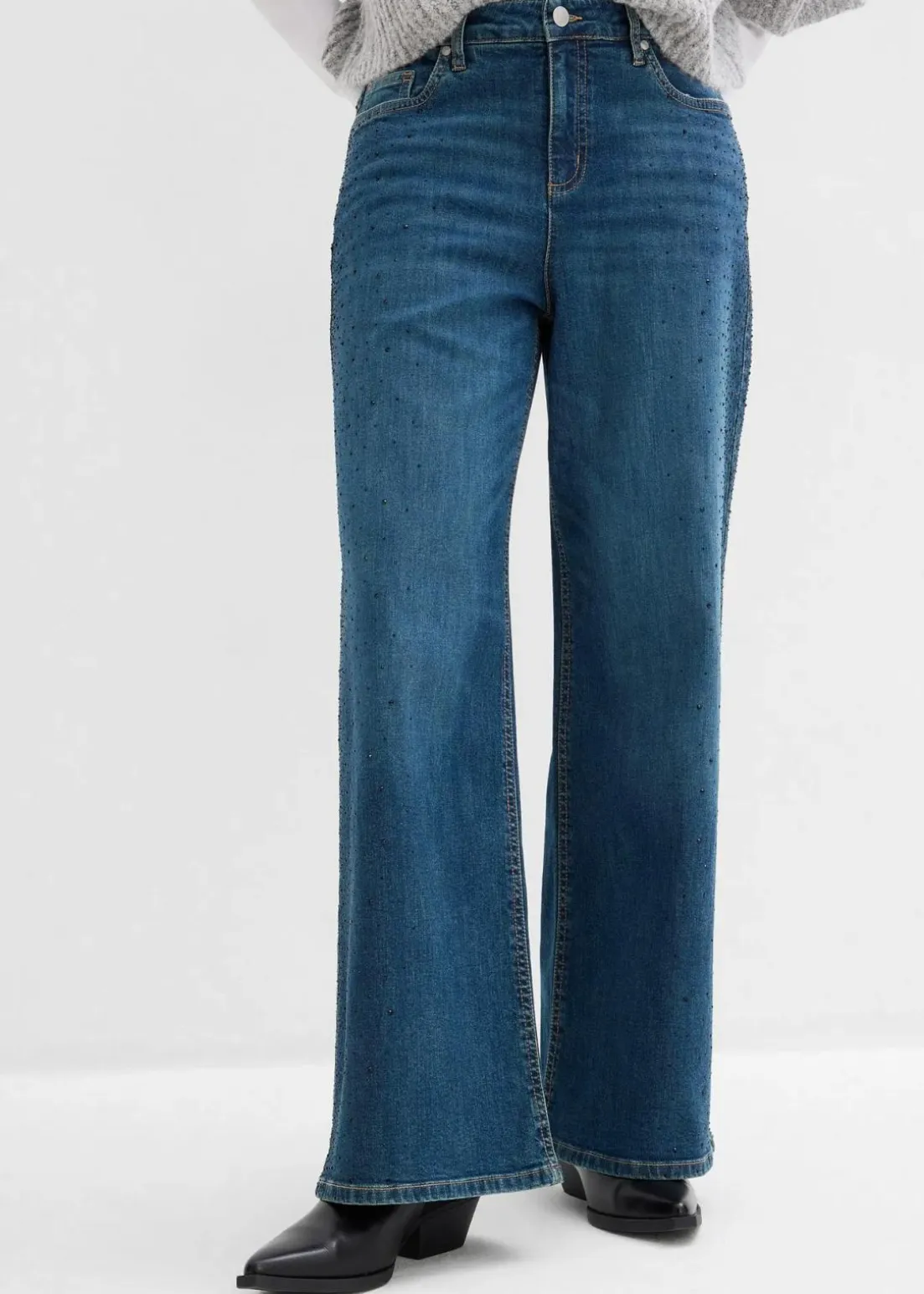 Wide-Leg-Jeans Mid Waist mit Glitzersteinen