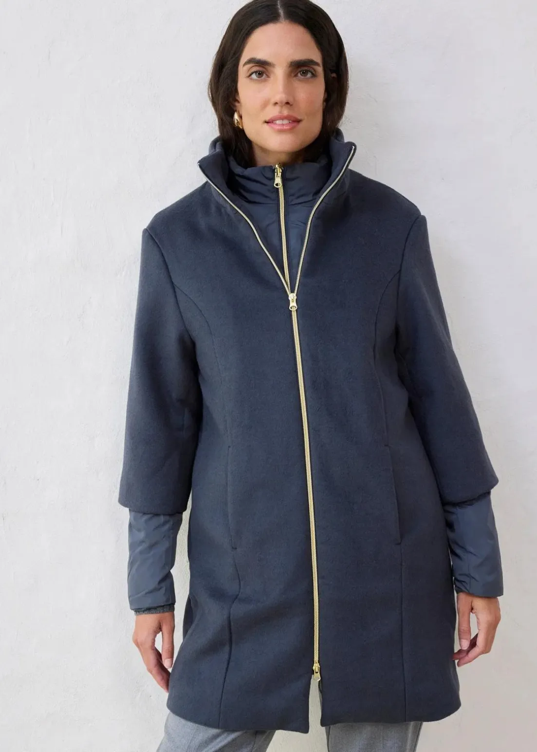 elegant und sportlich zu gleich, Wollmantel und Daunen -Innenjacke (2tlg), beides einzel tragbar