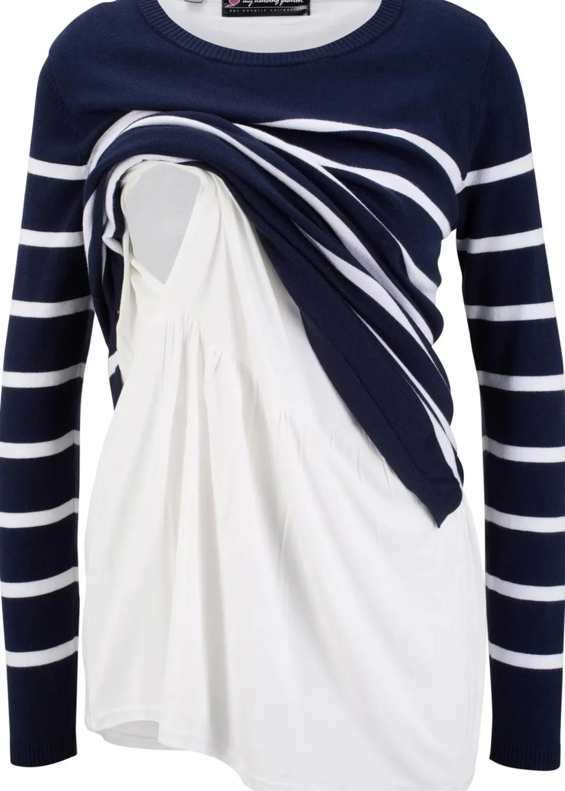 Strick-Pullover aus einer Viskosemischung mit praktischer Stillfunktion. Das Design mit dem integrierten Innentop aus Jersey erleichtert das Stillen und hilft Wärmeverlust zu vermeiden.