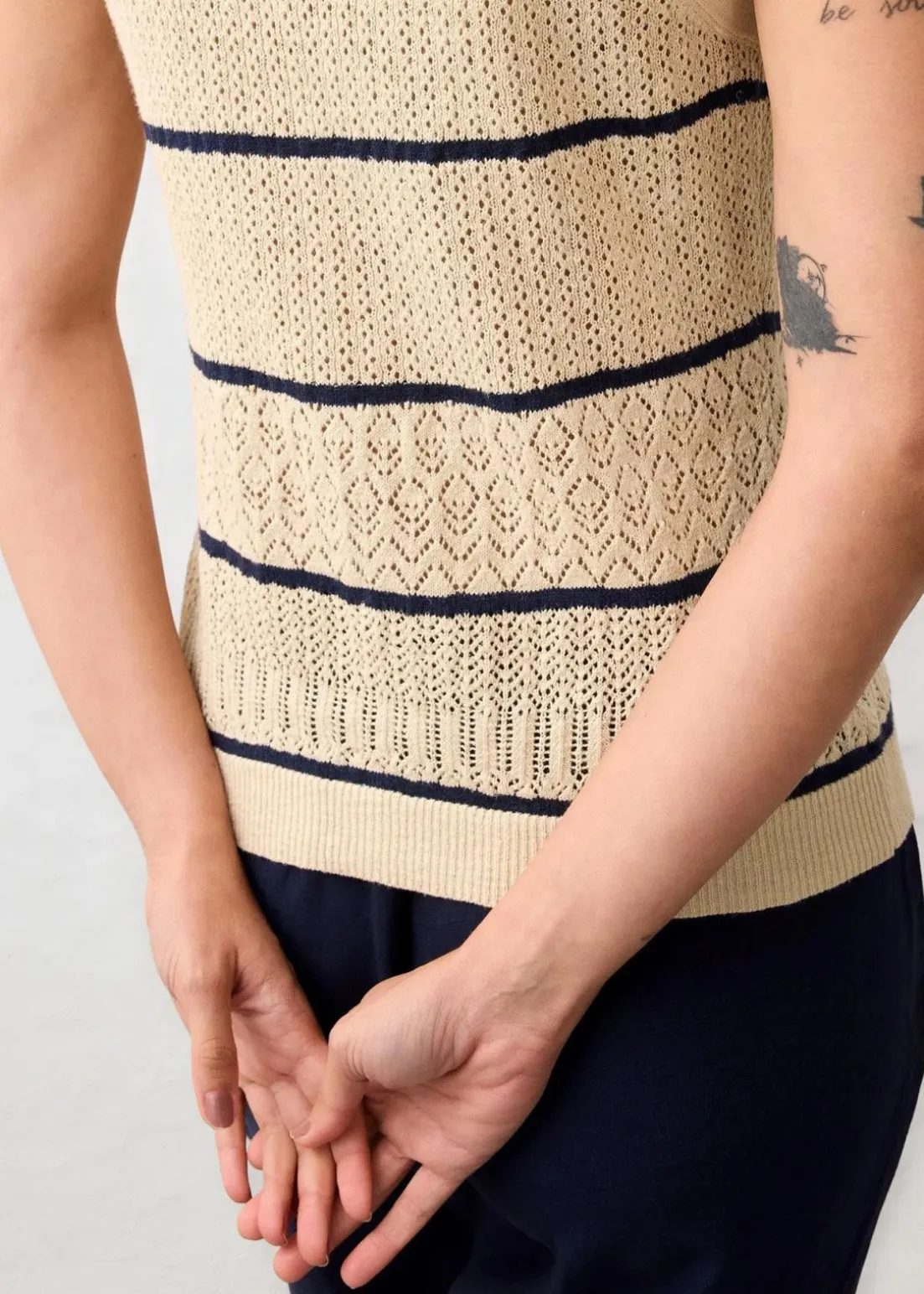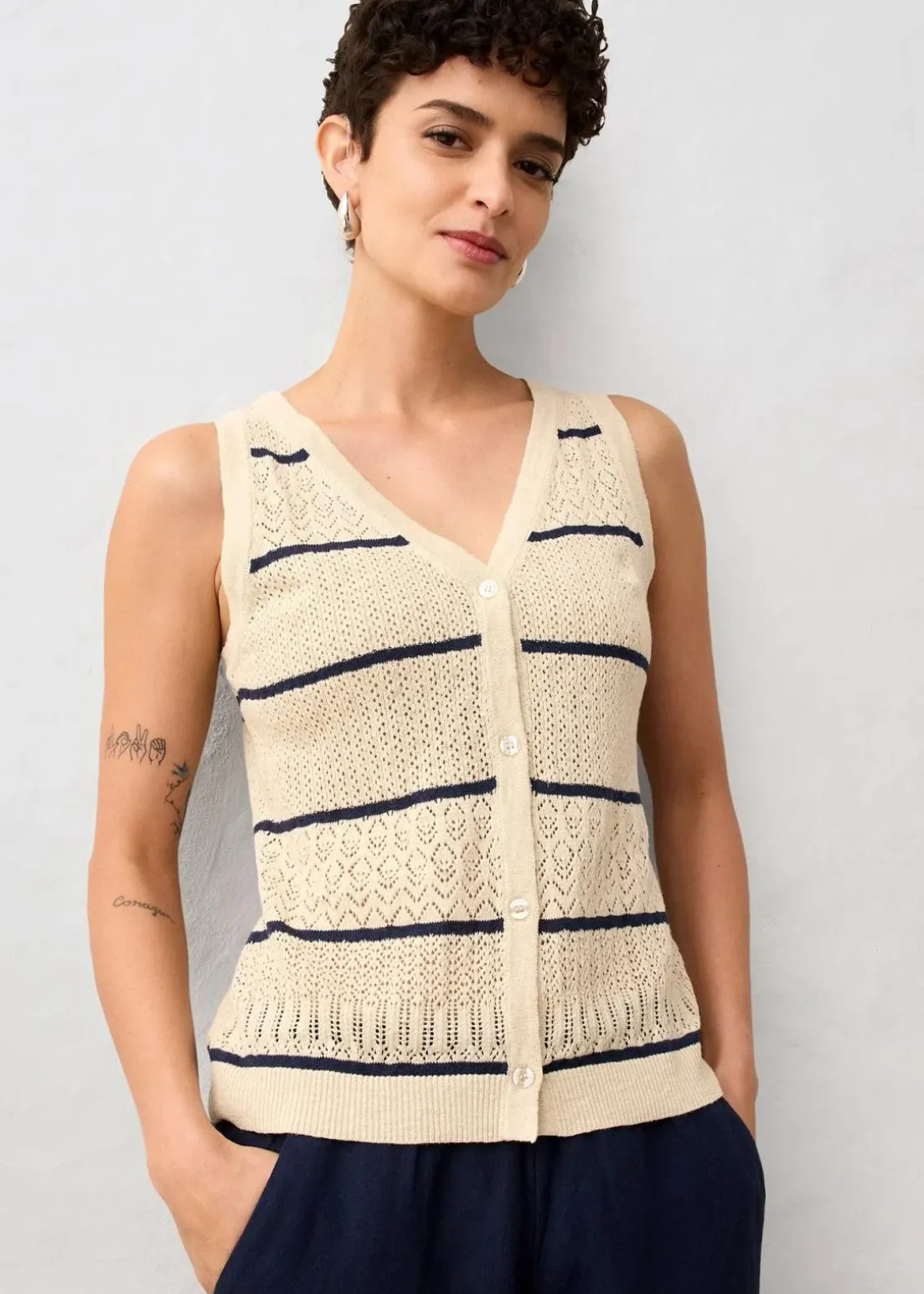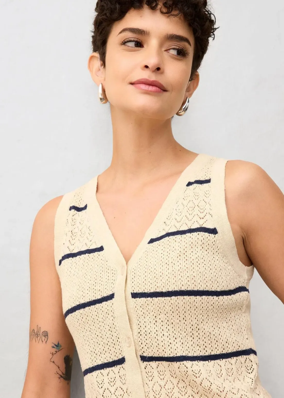 Ajour-Strickweste mit Leinenanteil