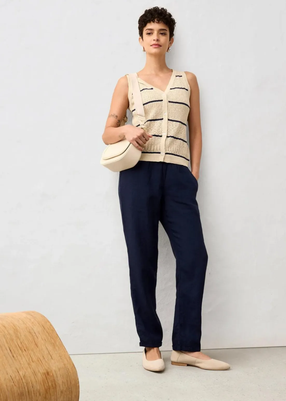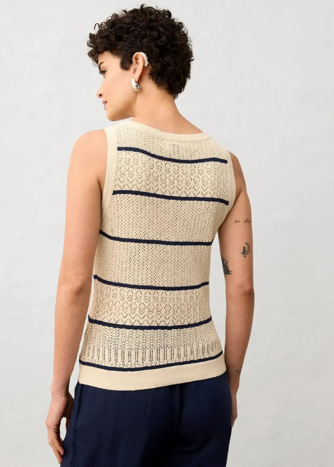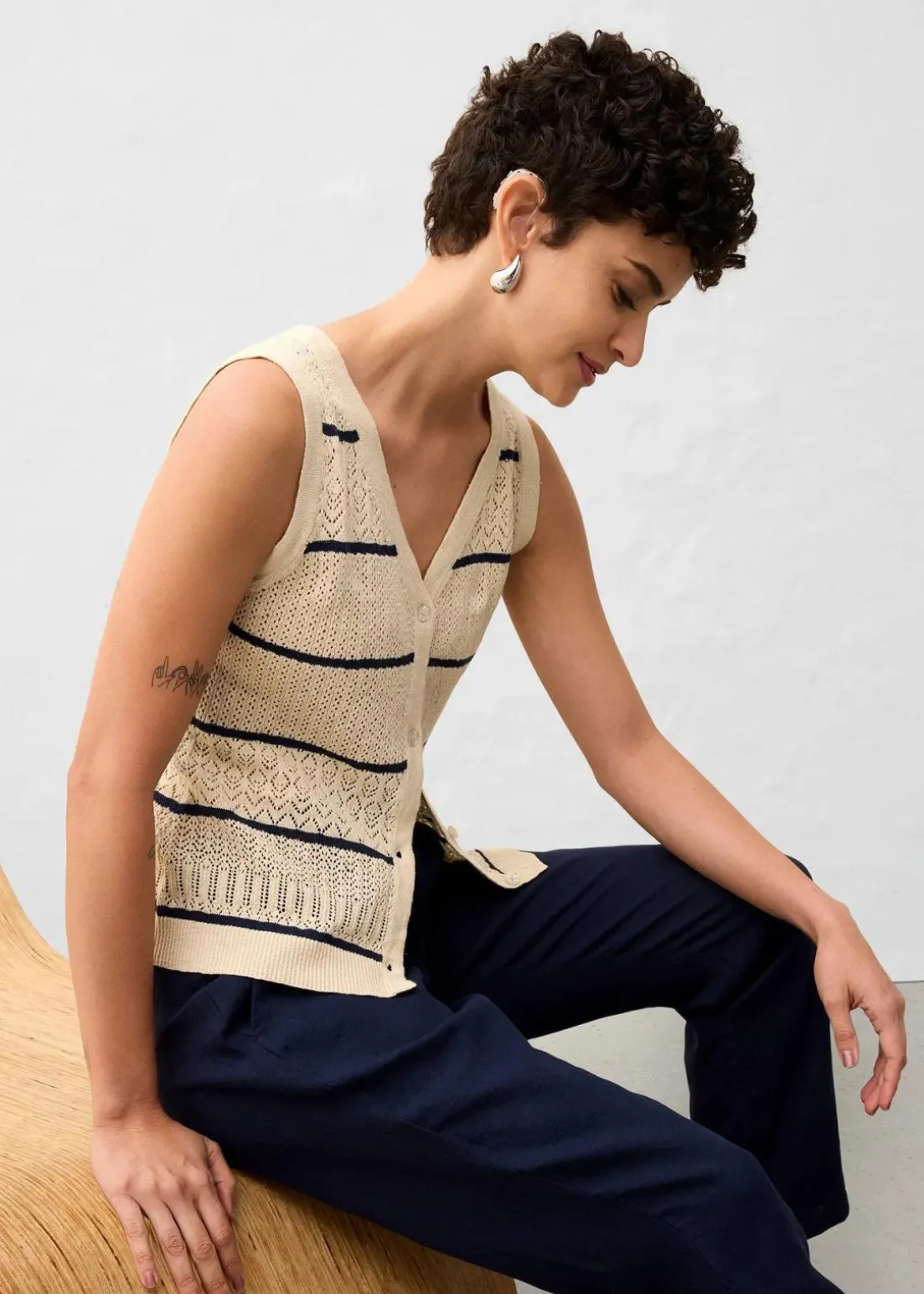 Ajour-Strickweste mit Leinenanteil