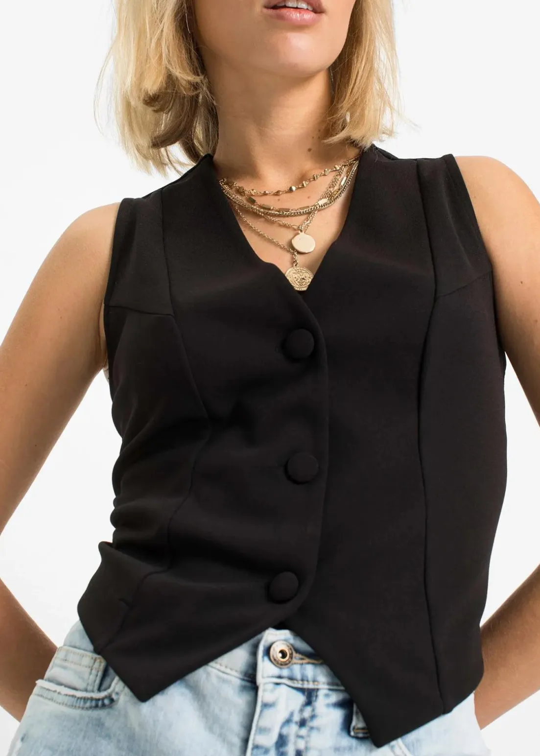 Modische Anzugweste aus fester Interlock-Qualität mit tiefem Ausschnitt