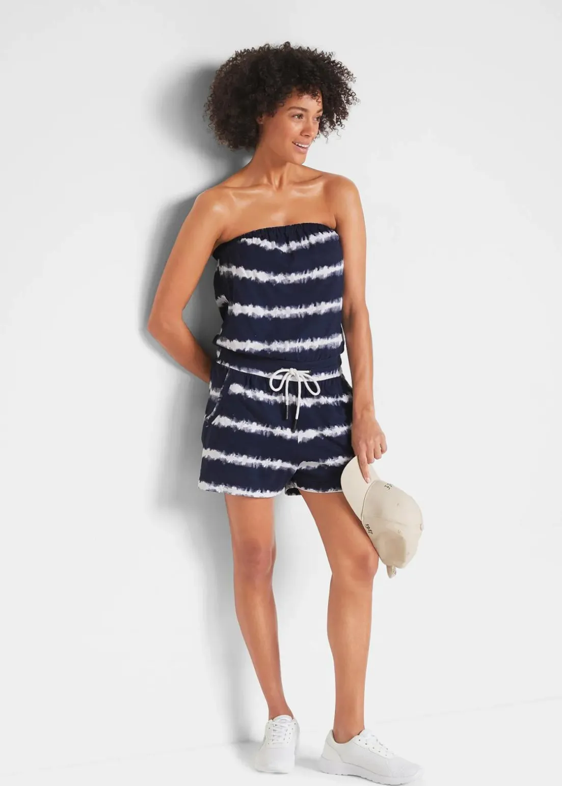 Sommerlicher Baumwoll- Bandeau-Jumpsuit mit Batikdruck