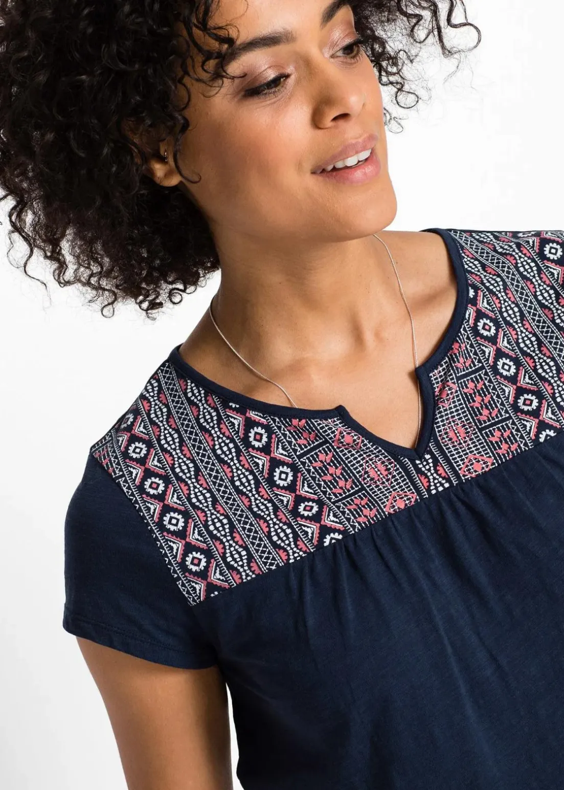 Schönes Shirt mit kurzen Flügelärmeln und Ethno-Druck