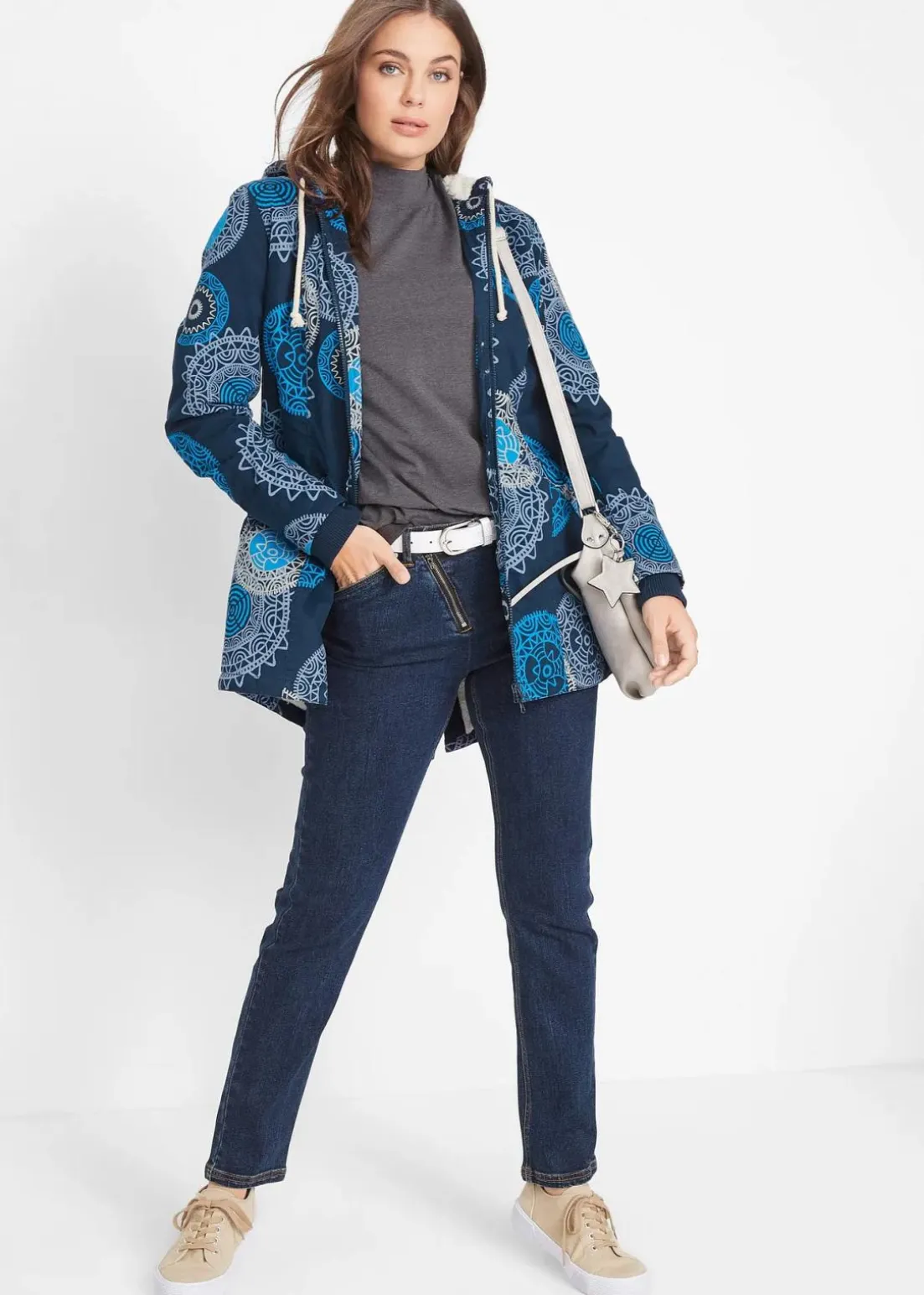 Kuschelig-weich gefütterter Mantel, hinten länger geschnitten