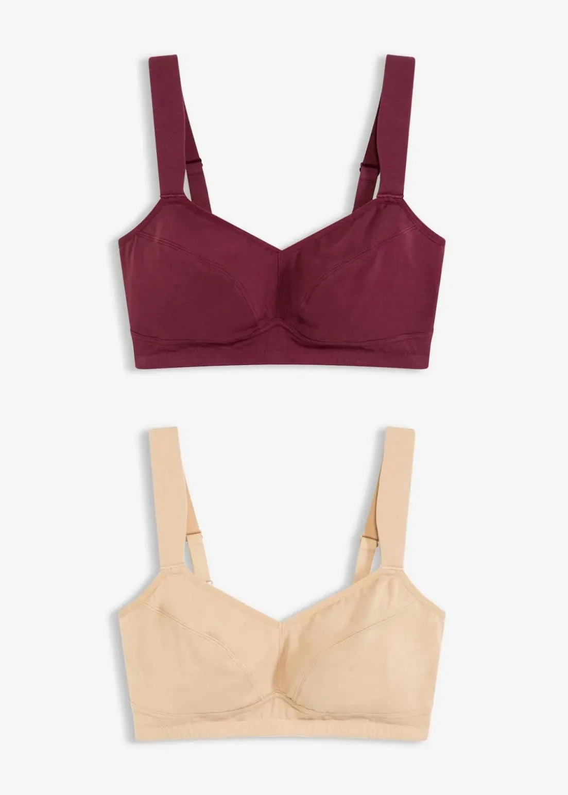 Diesen schlichten BH muss Frau einfach lieben! Er ist aus weicher Bio-Baumwolle ohne Bügel gefertigt und kommt direkt im vorteilhaften Multipack. Formgebende Teilungsnähte und eine cleane Optik verleihen ihm den modischen aber unaufdringlichen Look, während die breiten, verstellbaren Träger und das elastische Unterbrustband den Komfort erhöhen. Zu schließen ist das Wohlfühlwunder über einen Haken-und-Ösenverschluss an der Rückseite und fällt wie die Träger, in größeren Cup-Größen etwas weiter aus.