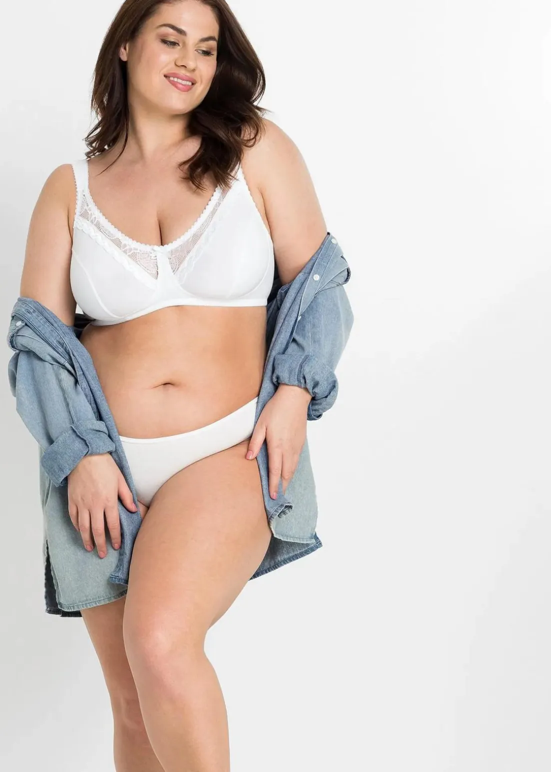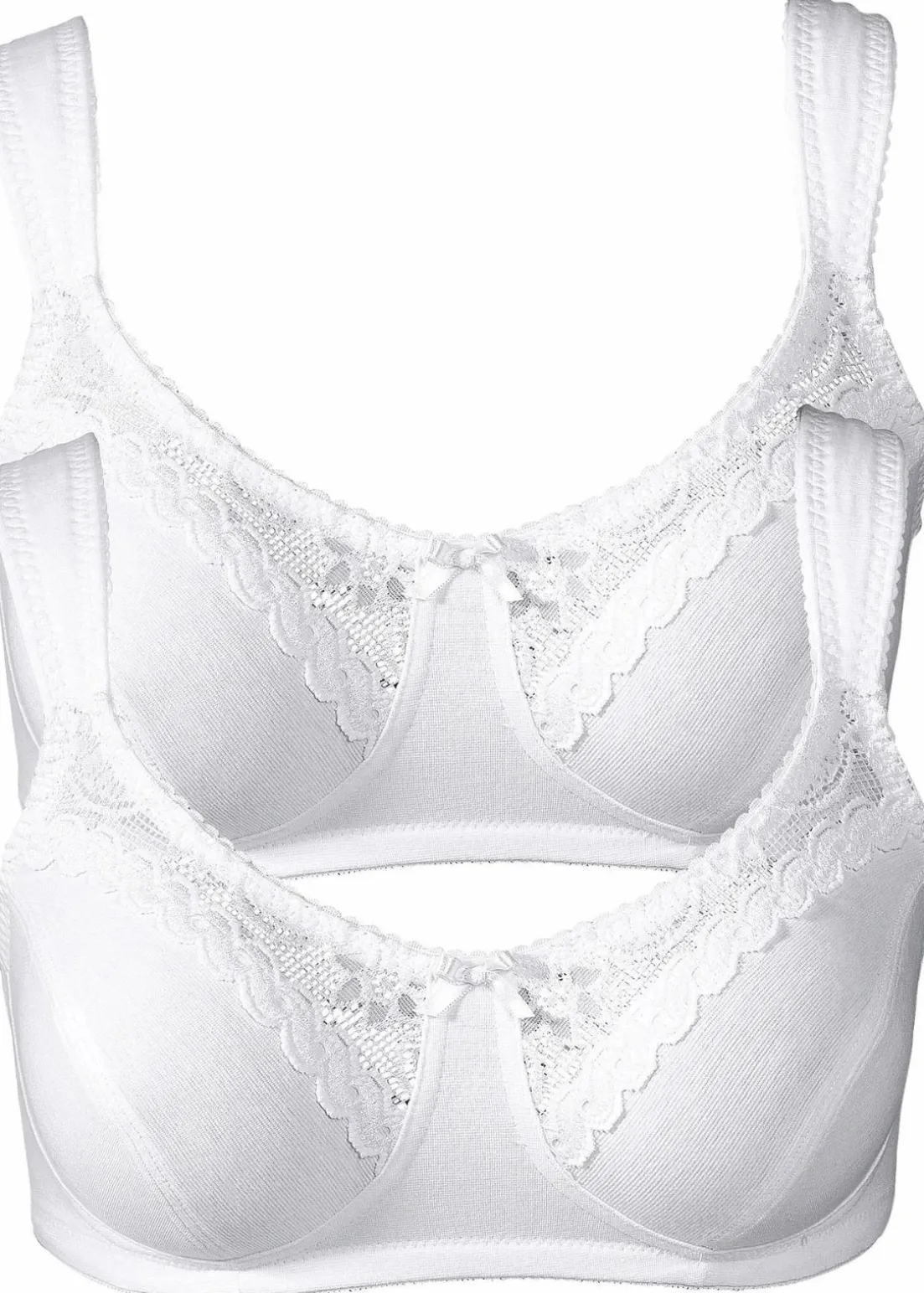 Der Tragekomfort ist bei diesem BH ohne Bügel besonders hoch. Die verstellbaren Träger sind schön breit geschnitten und leicht gepolstert, damit sie nicht unangenehm einschneiden. Das macht den BH aus Bio-Baumwolle zum perfekten Begleiter im Alltag.An der oberen Hälfte der Cups ist edle Spitze verarbeitet, die dem BH im Zweierpack von bpc einen Hauch Raffinesse verleiht.