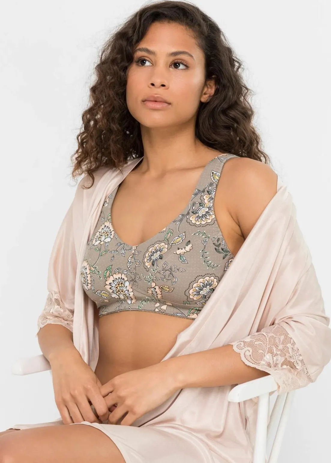 Bügellos verarbeiteter BH mit breiten, gepolsterten Trägern für hohen Tragekomfort.