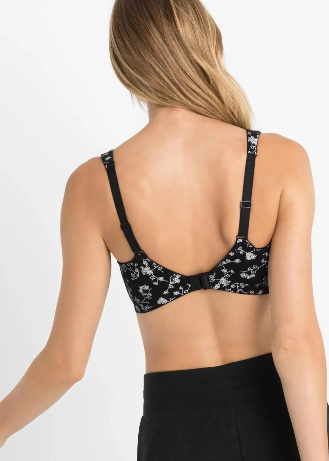 Der BH ohne Bügel bietet mit seiner schönen Bio-Baumwollqualität angenehmen Tragekomfort. Das weiche Material schmiegt sich perfekt an und die leicht gepolsterten Träger entlasten die Schulterpartie.Im attraktiven Doppelpack sind zwei BHs ohne Bügel aus der bpc collection mit einem verspielten Blumendruck enthalten. Dieser ansprechende BH vereint bequemes Tragegefühl und modisches Design.