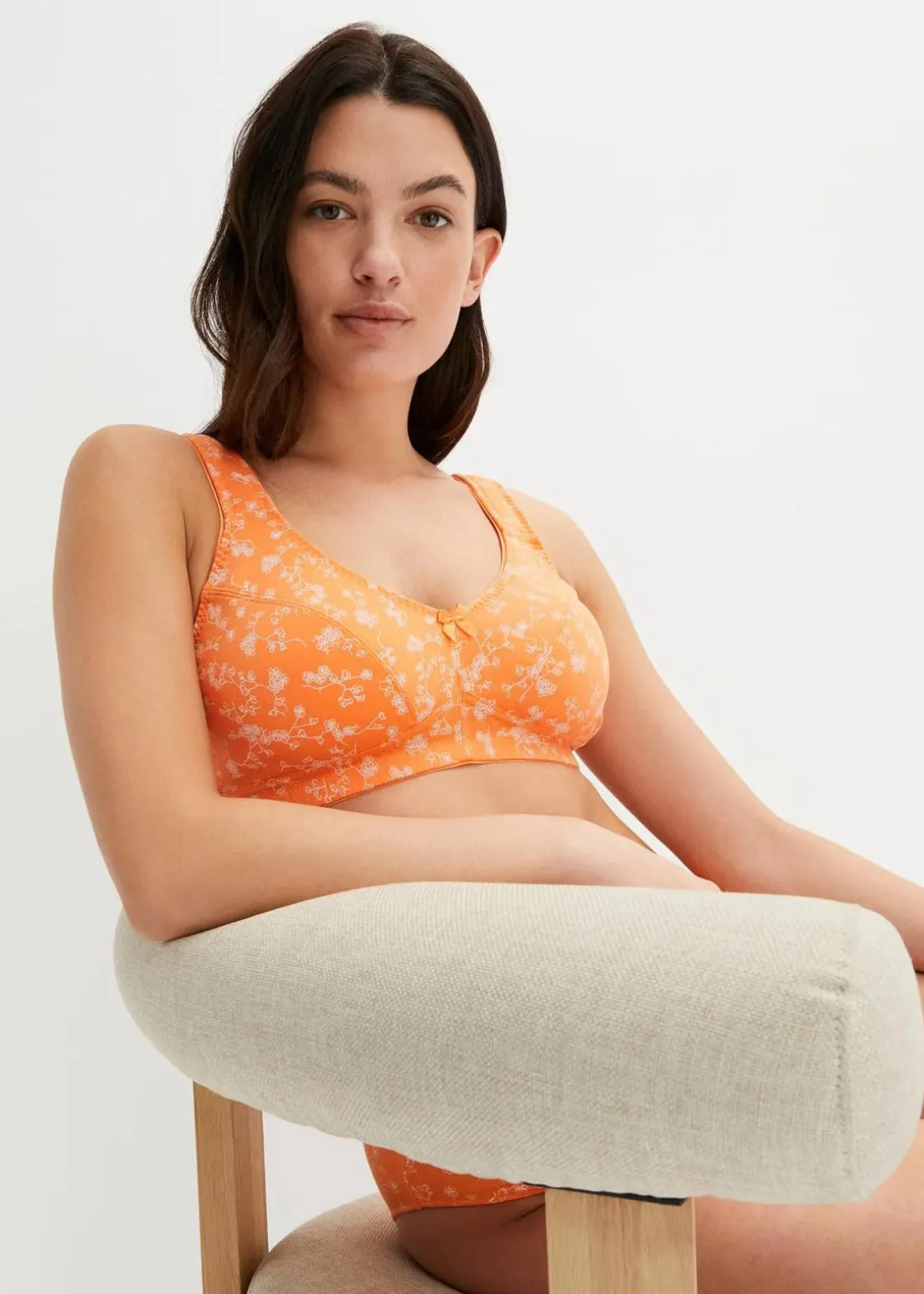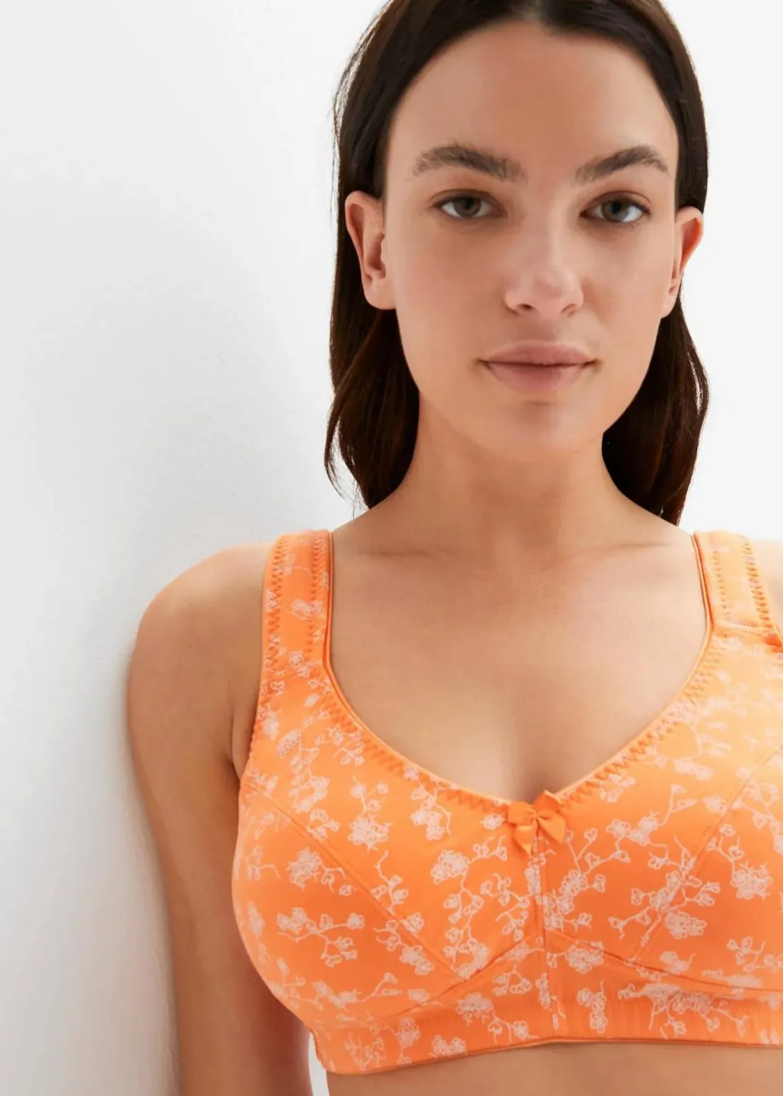 Der BH ohne Bügel bietet mit seiner schönen Bio-Baumwollqualität angenehmen Tragekomfort. Das weiche Material schmiegt sich perfekt an und die leicht gepolsterten Träger entlasten die Schulterpartie.Im attraktiven Doppelpack sind zwei BHs ohne Bügel aus der bpc collection mit einem verspielten Blumendruck enthalten. Dieser ansprechende BH vereint bequemes Tragegefühl und modisches Design.