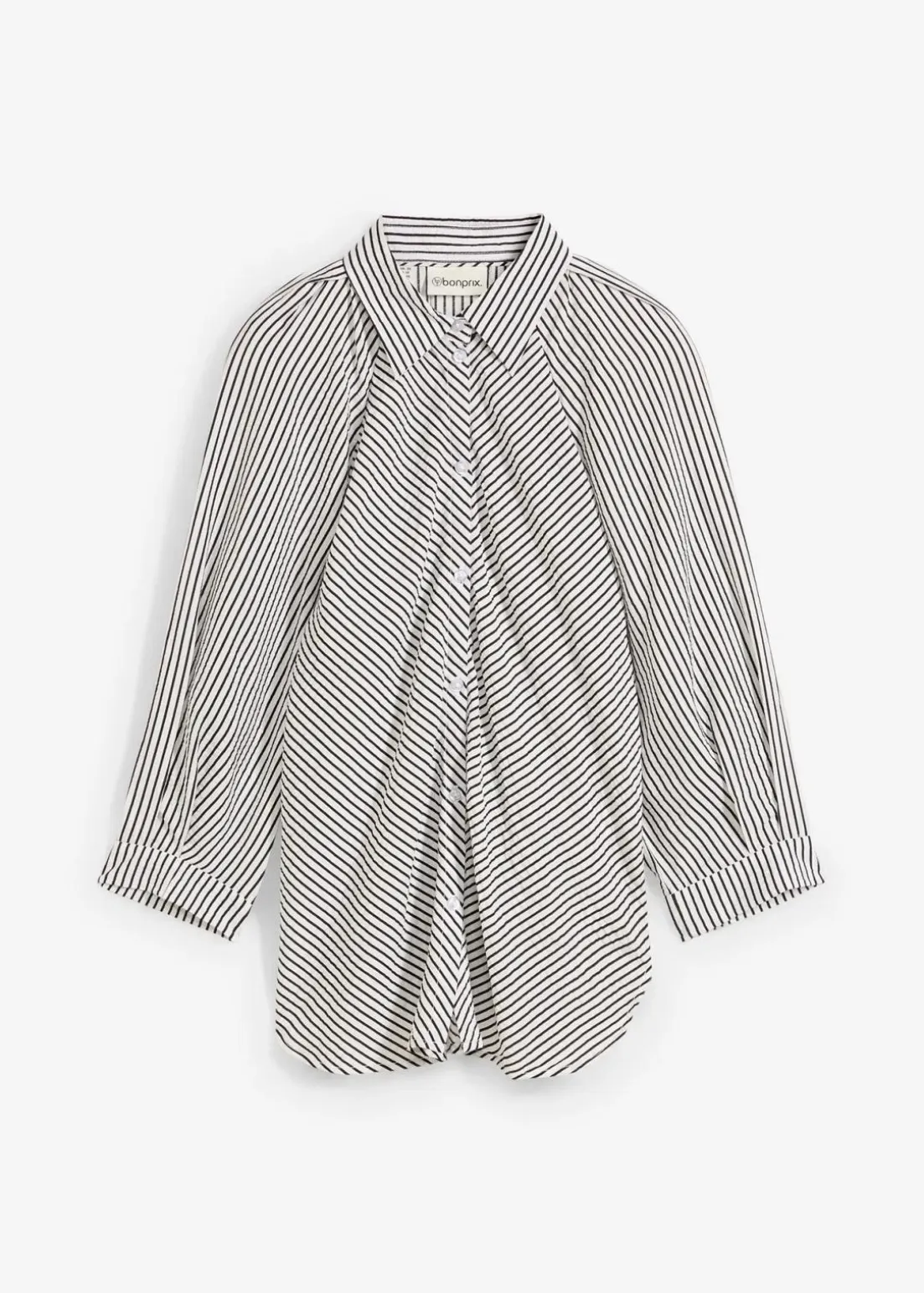 Streifenbluse mit Falten an den Schultern und Puffärmeln
