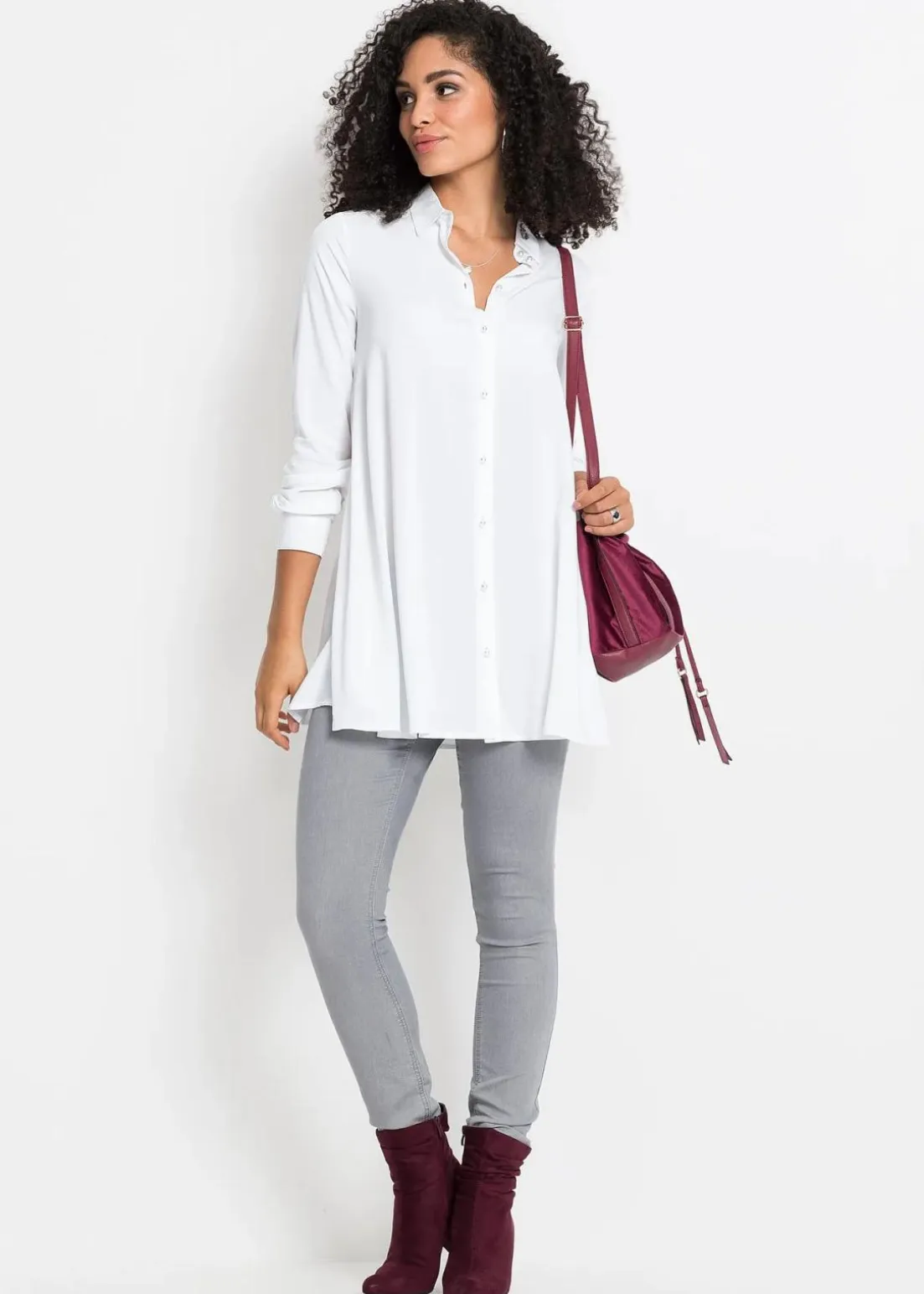 Figurumspielende Bluse in Long-Form mit Perlenverzierungen