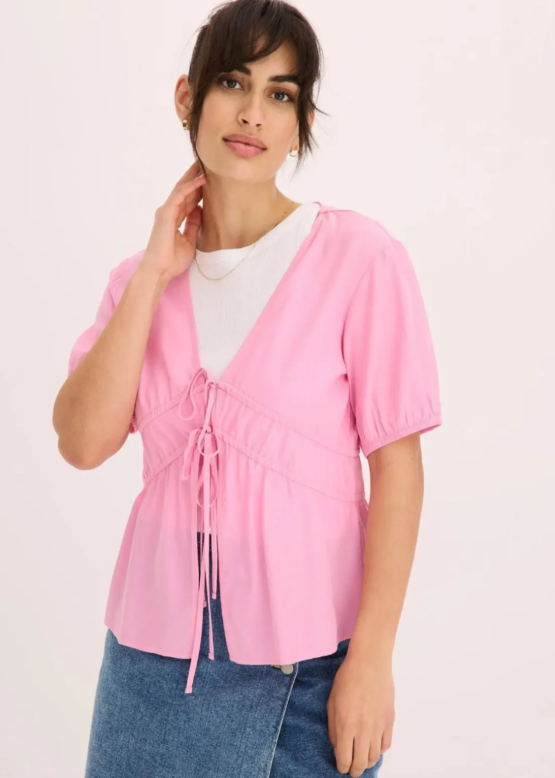 Lässige Bluse mit weiten Ärmeln und Bindeband