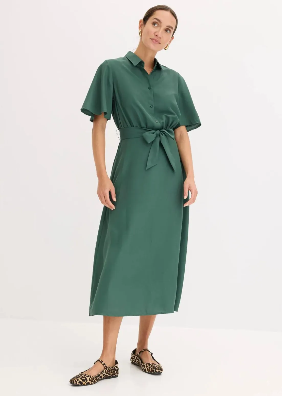 feminines Blusenkleid in Midilänge mit Bindeband in der Taille