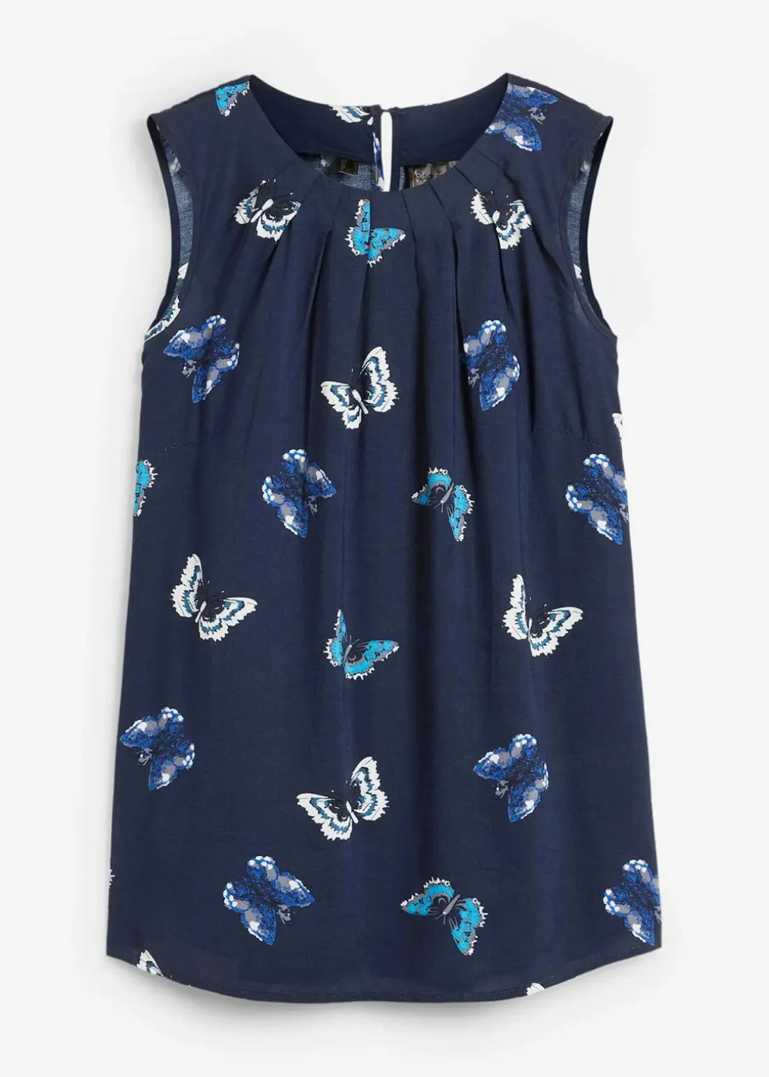 Mit eingelegten Falten am Rundhals-Ausschnitt, kleine Seitenschlitze, Länge von ca. 67 cm (Gr.36) bis ca. 76 cm (Gr.54), maschinenwaschbar.