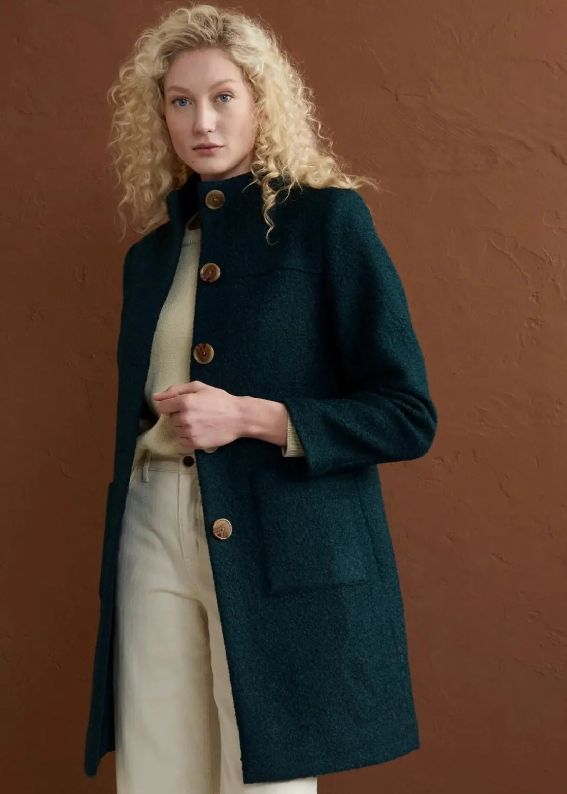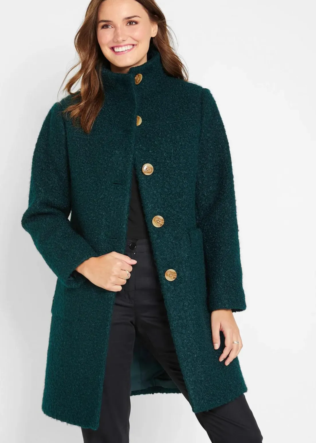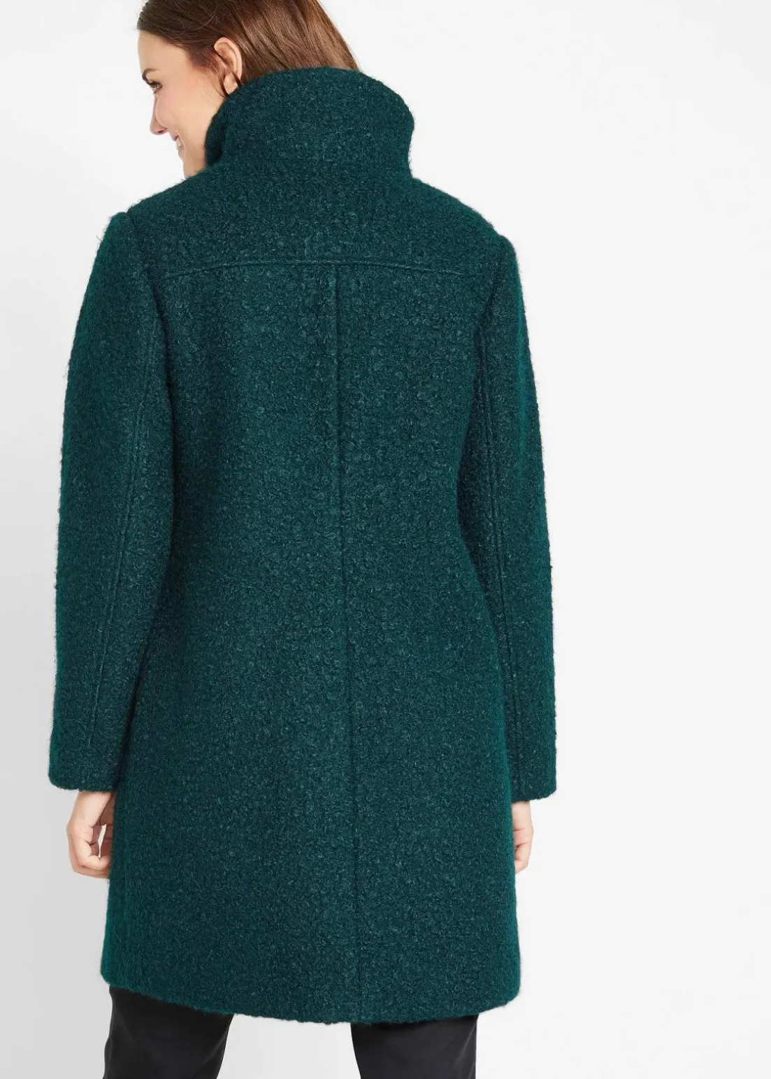 Strukturierter Mantel mit Knopfleiste und Stehkragen, figurumspielend in A-Linie