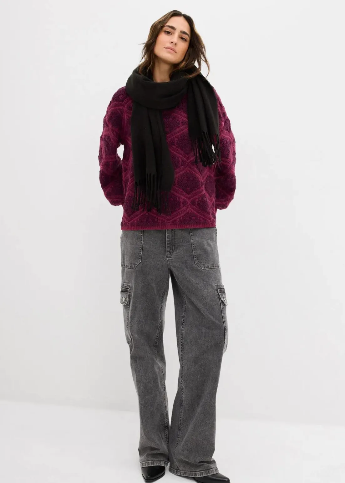 Modischer Jacquard Pullover mit Rundhalsausschnitt
