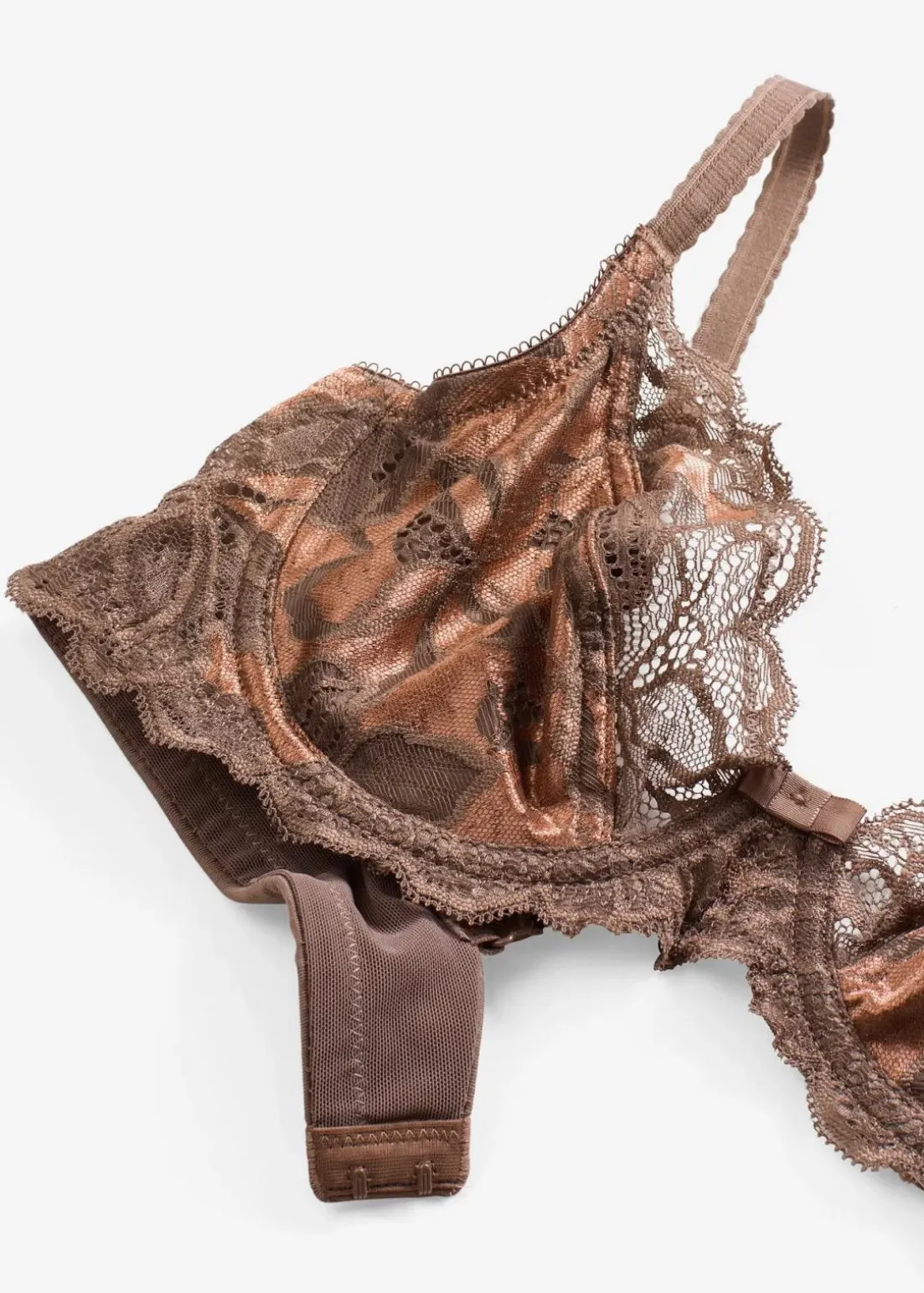 Bügel-BH aus zweifarbiger Spitze und mit raffinierten Trägern.
