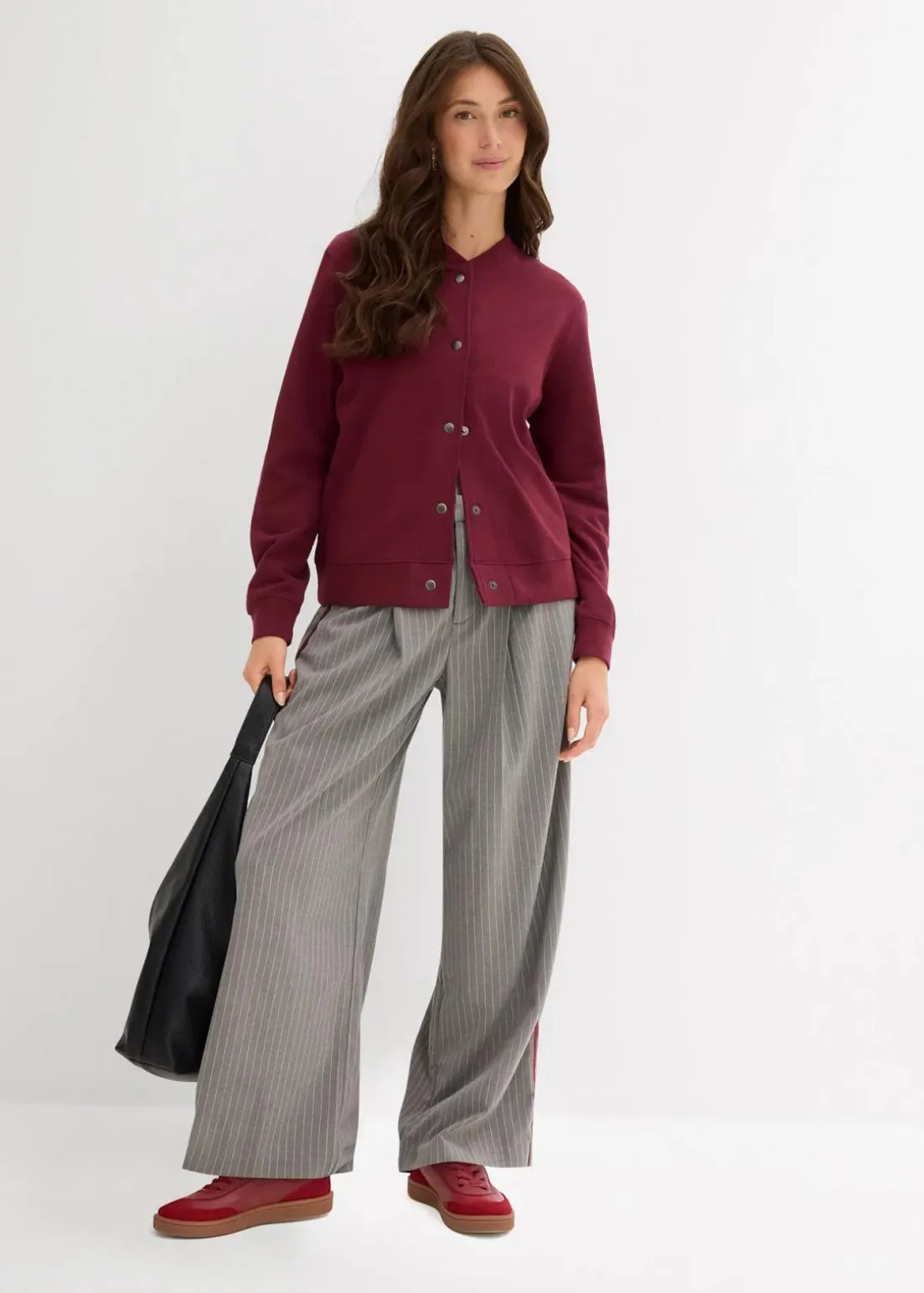 Weit geschnittene Bundfaltenhose mit Kontraststreifen